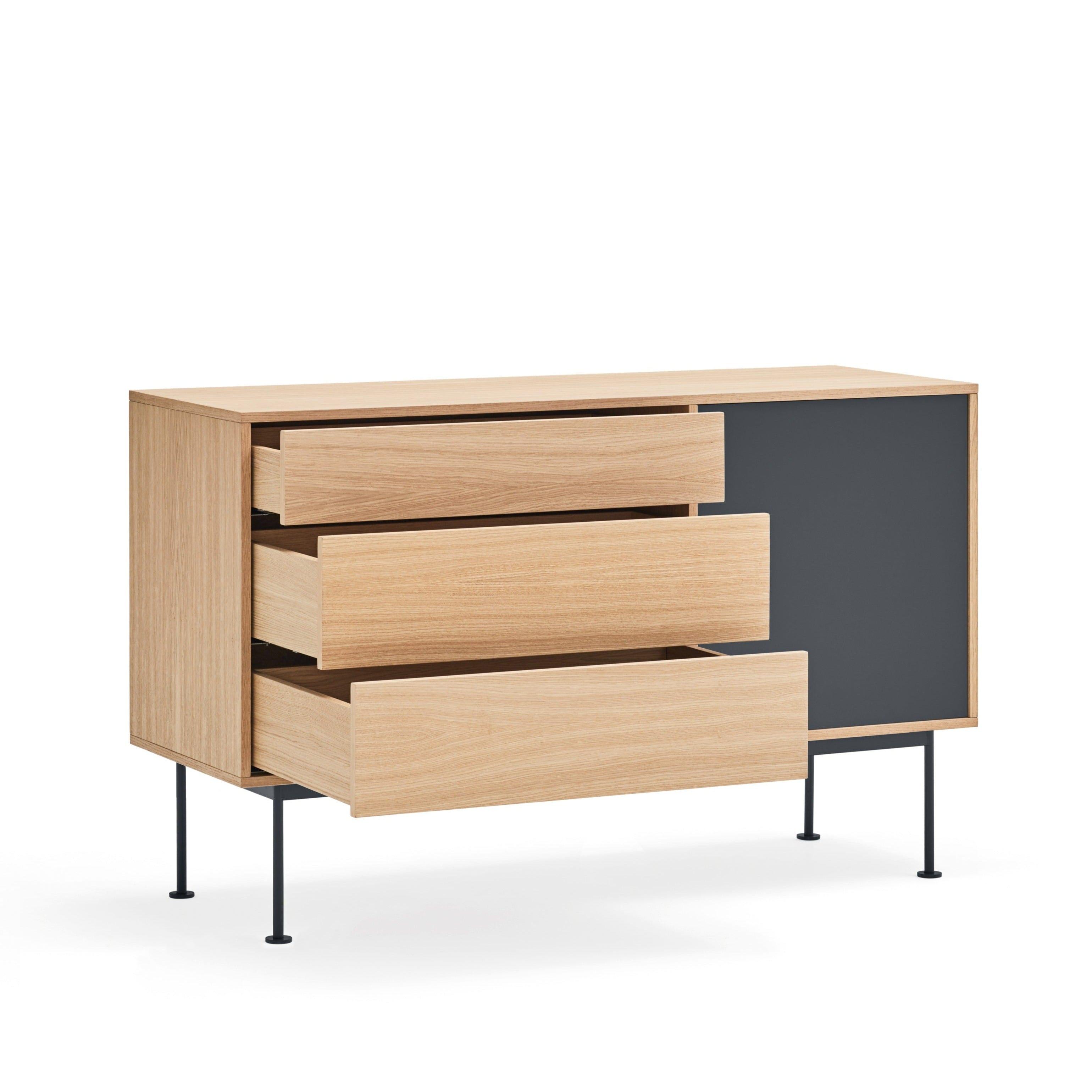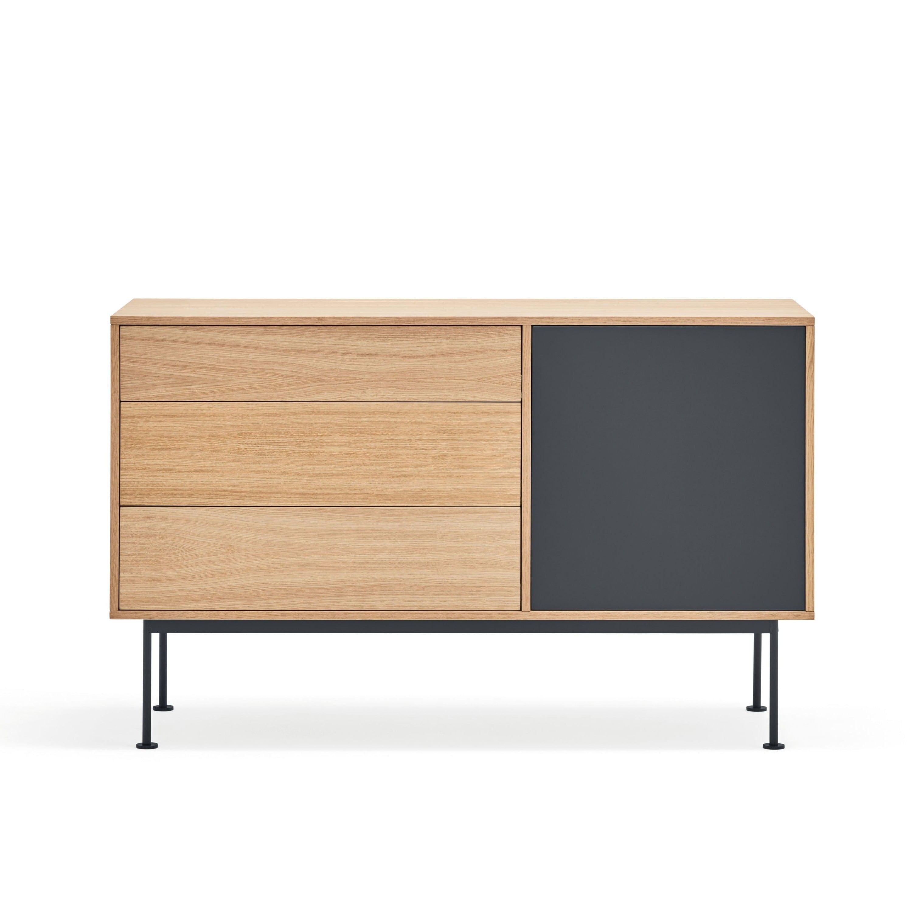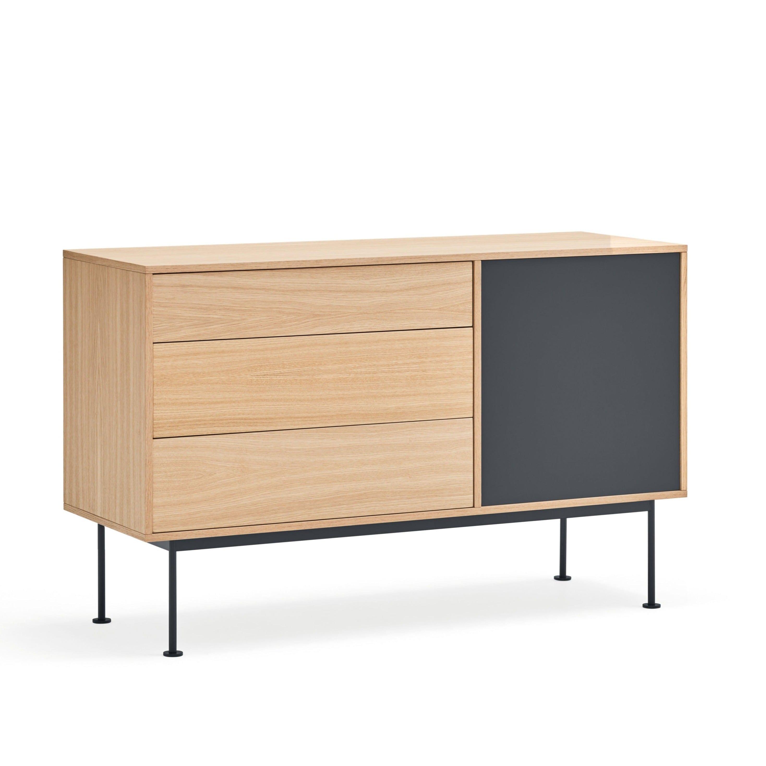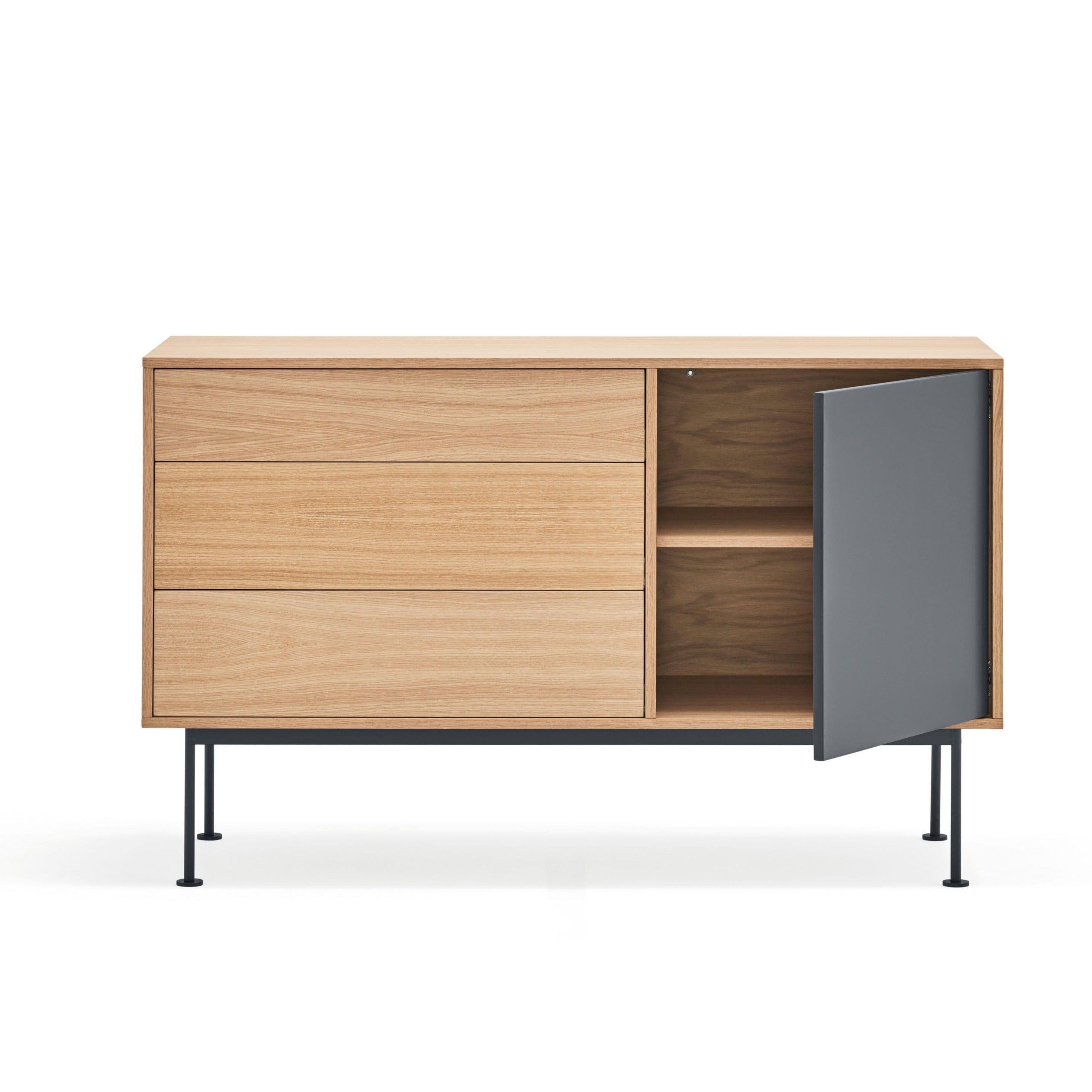 Natural materials and a design perfected in every detail — that's what cabinet Yoko. The intriguing combination of the natural texture of oak wood with a pastel shade of gray is the idea of the outstanding duo, consisting of Eric Cambres and Carlos Garcia.