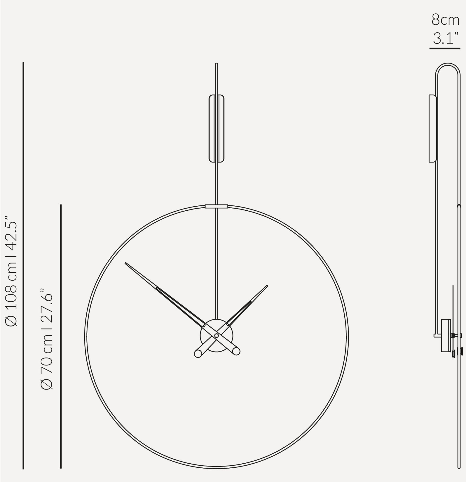 Wall Clock DARO Walnut Wood with Brass