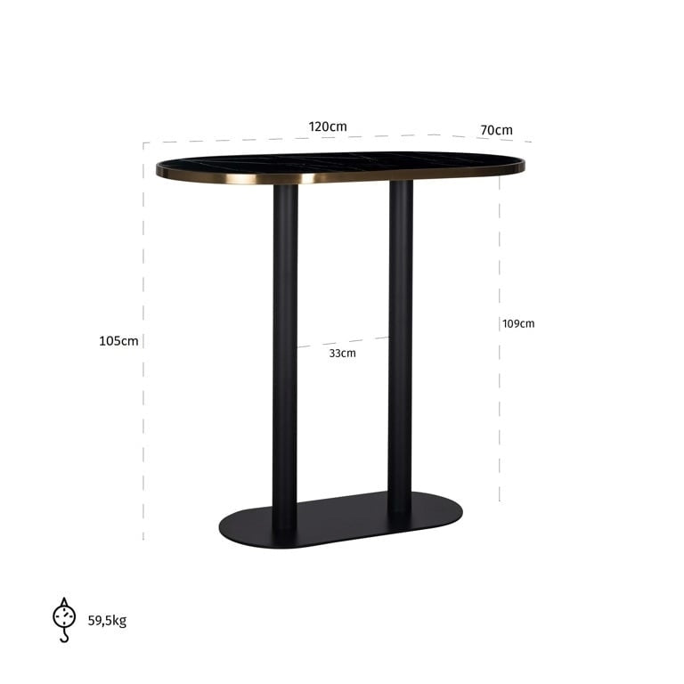 Bar Zenza is a real symbol of luxury and elegance, which is an impressive decorative element. His oval top catches the eye with a beautiful black conglomerate, perfectly imitating marble. This unique material adds the top of the sophisticated look, giving it an elite character.