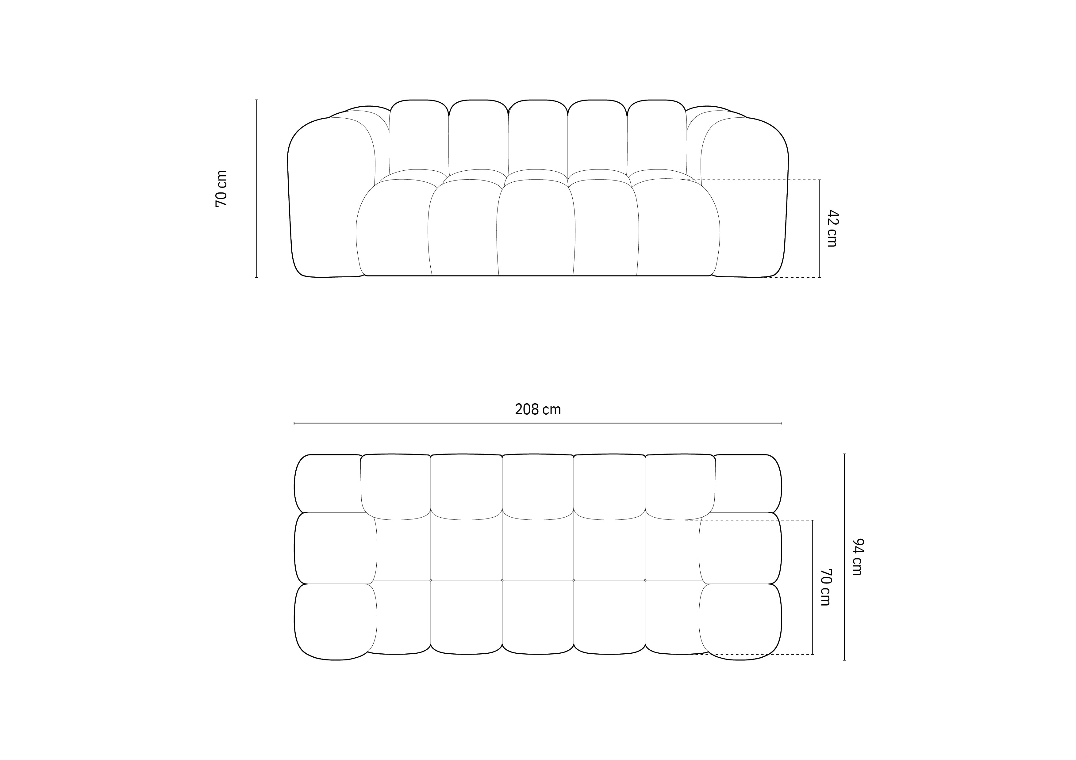 Das Sofa präsentiert nicht nur ein attraktives Aussehen, sondern strahlt auch eine gemütliche Atmosphäre aus. Der samtige Stoff, der sich durch außergewöhnliche Haltbarkeit und Weichheit auszeichnet, verleiht dem Gesamtbild ein luxuriöses Finish. Die Möbel aus der limitierten Kollektion Halley bilden eine eindrucksvolle Sitzgruppe und bringen einen subtilen Akzent zeitloser Eleganz in den Raum.