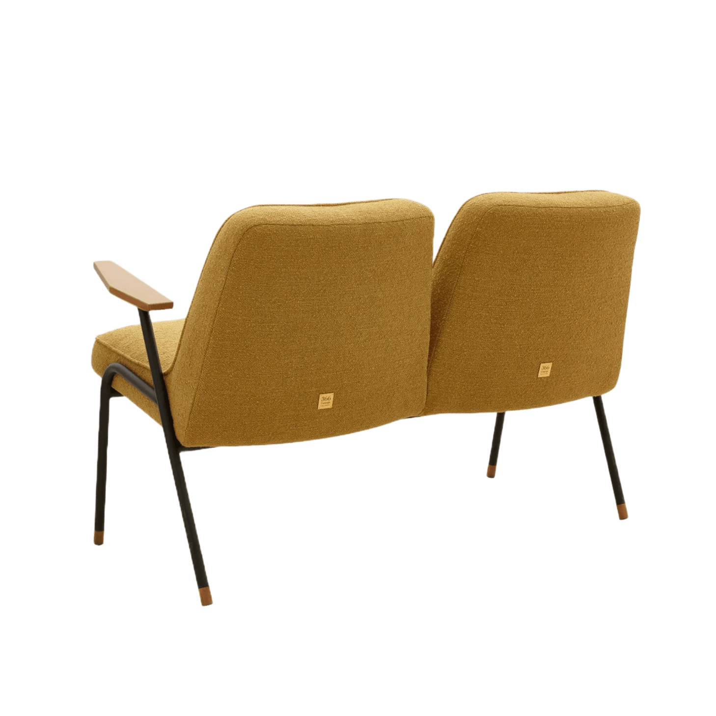 2-Personen-Sofa 366 gelbes Metall im Boucle-Senfstoff
