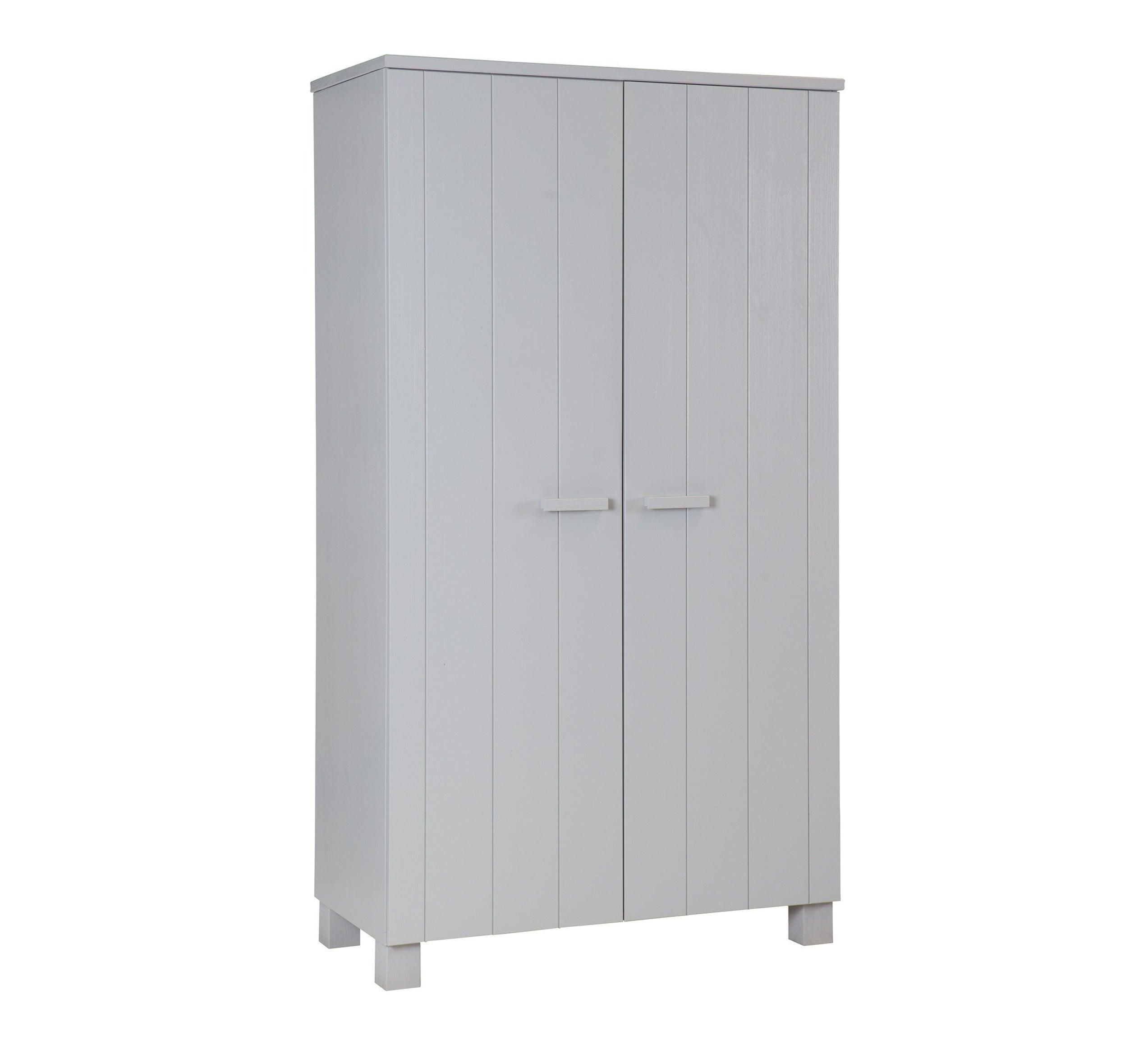 Der graue Kleiderschrank Dennis ist aus Kiefernholz gefertigt, was ihm Langlebigkeit und Robustheit verleiht. Die beiden Türen lassen sich mühelos öffnen und geben den Blick auf einen Stauraum frei, der groß genug ist, um alles zu beherbergen, was Sie benötigen – von Kleidung über Bettwäsche bis hin zu Handtüchern. Zusätzlich kann der Schrank mit zwei praktischen Schubladen ausgestattet werden, die eine noch bessere Organisation und Aufbewahrung kleiner Gegenstände ermöglichen.