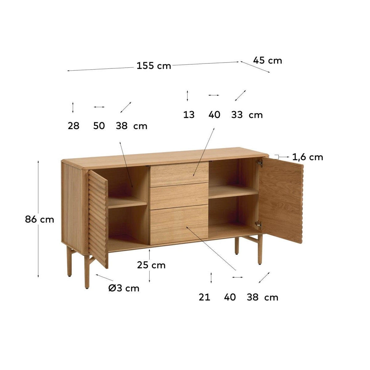 2-Türer-Schubladen Lenon Eiche Holz