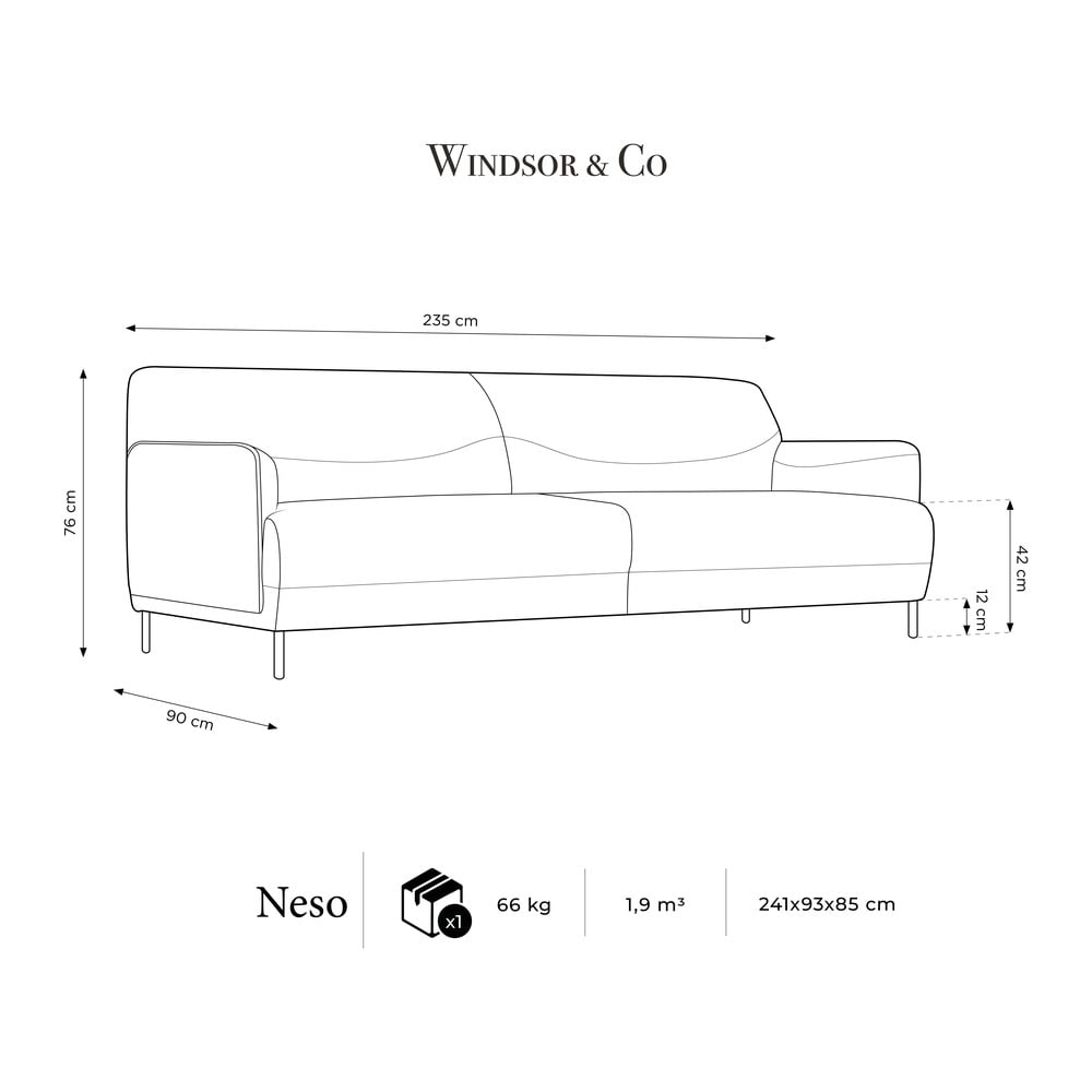 Sofa für drei Personen Neso ist ein elegantes Möbelstück, das modernes Design mit klassischer Form hervorragend verbindet. Dekorative Nähte verleihen der Sofa einen einzigartigen Charakter. Die tiefe Sitzfläche in Kombination mit der bequemen Rückenlehne und den praktischen Armlehnen garantiert den richtigen Komfort bei der Nutzung.