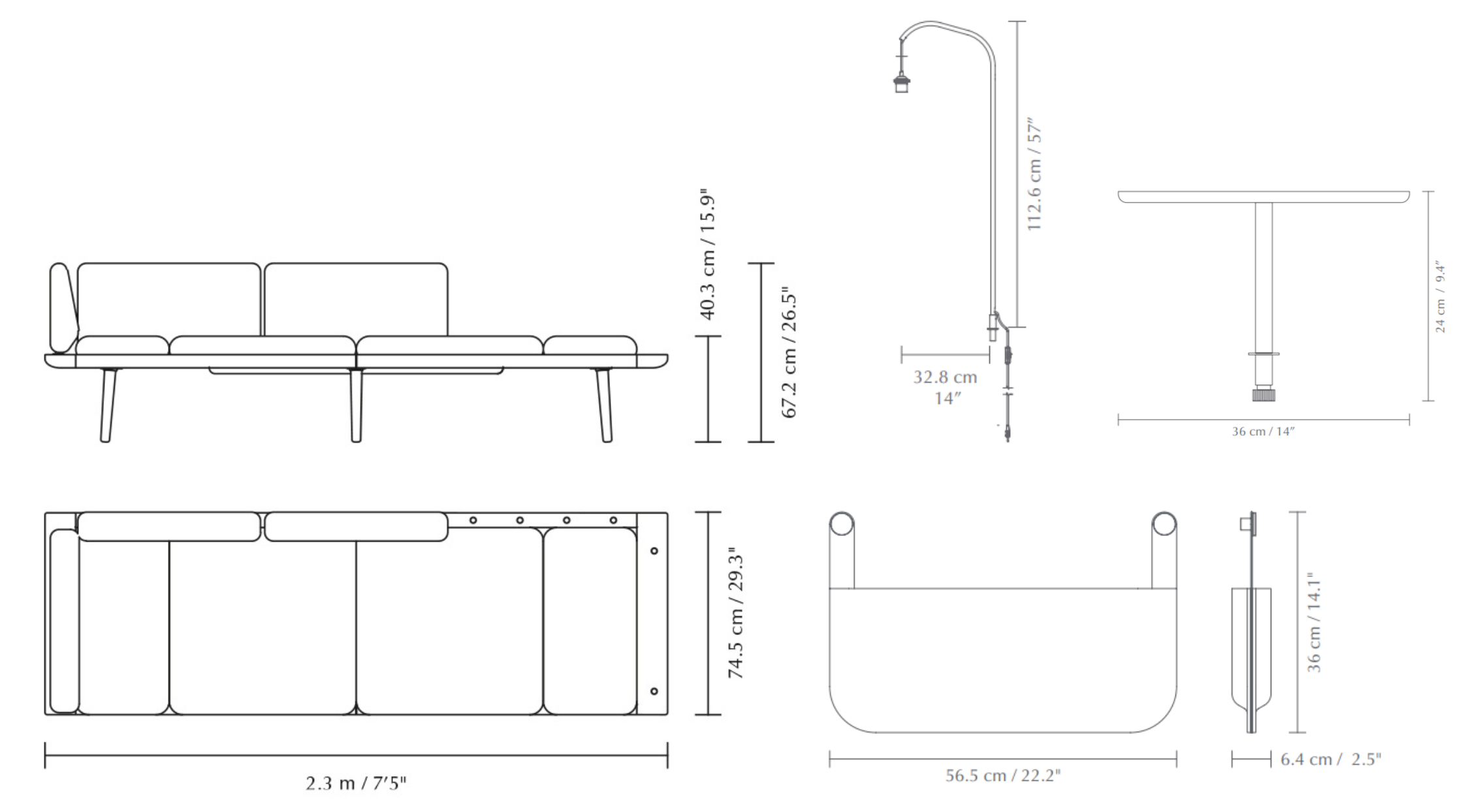Eines der schmalen Sitzkissen hat ein dünnes Tablett auf der Rückseite, was ein idealer Ort für Kaffee oder Laptop ist und zusätzlichen Komfort bietet.