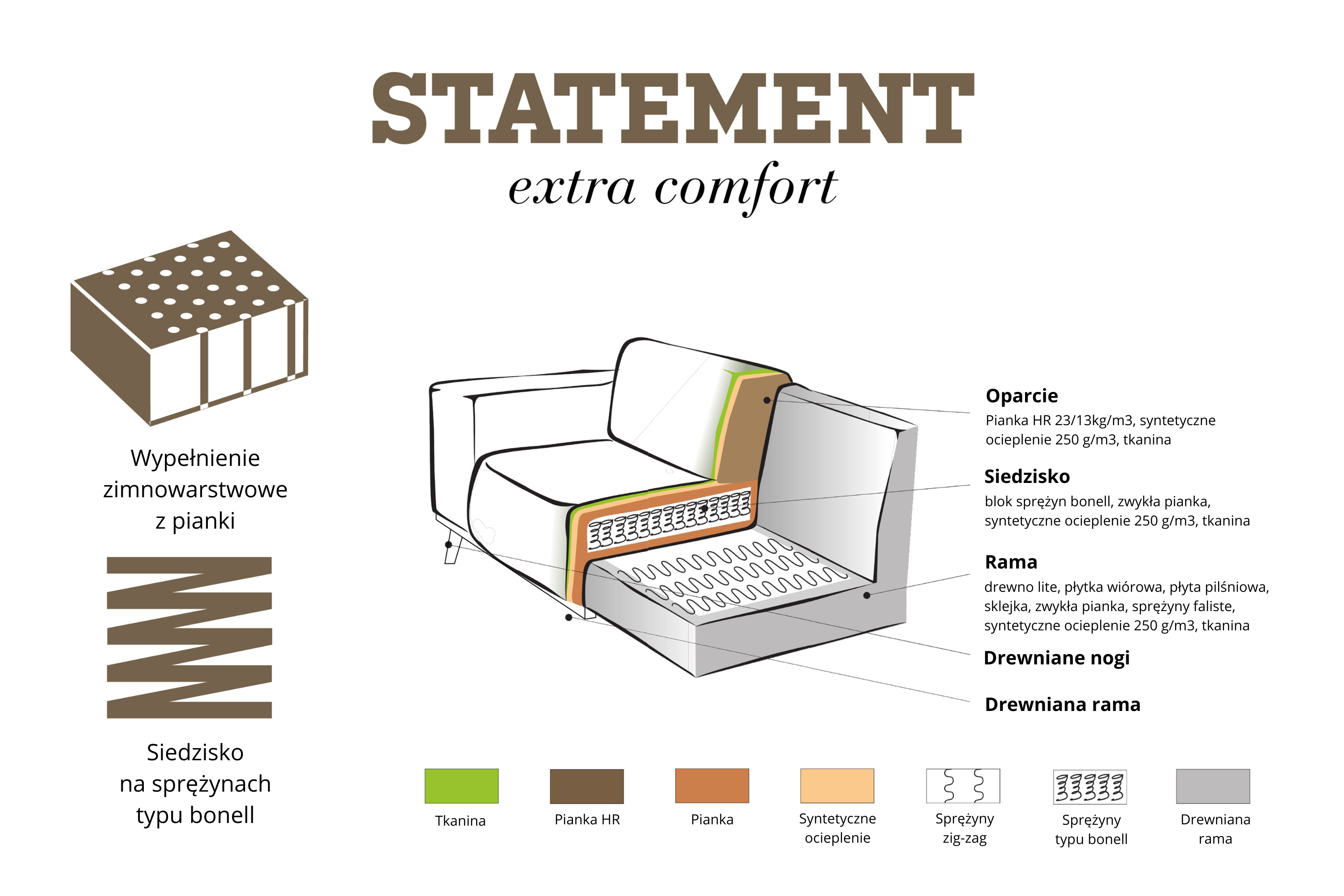 Klassische Farben verleihen diesem Möbelstück einen besonderen Charakter und harmonieren perfekt mit verschiedenen Einrichtungsstilen - von modern über klassisch bis hin zu industriell. Der bequeme Sitz und die Rückenlehne bieten komfortable Bedingungen zur Entspannung nach einem intensiven Tag. Sowohl für Familien als auch für Personen, die einen besonderen Stil schätzen, ist die Sofa Statement eine hervorragende Ergänzung für jedes Wohnzimmer oder Aufenthaltsraum.