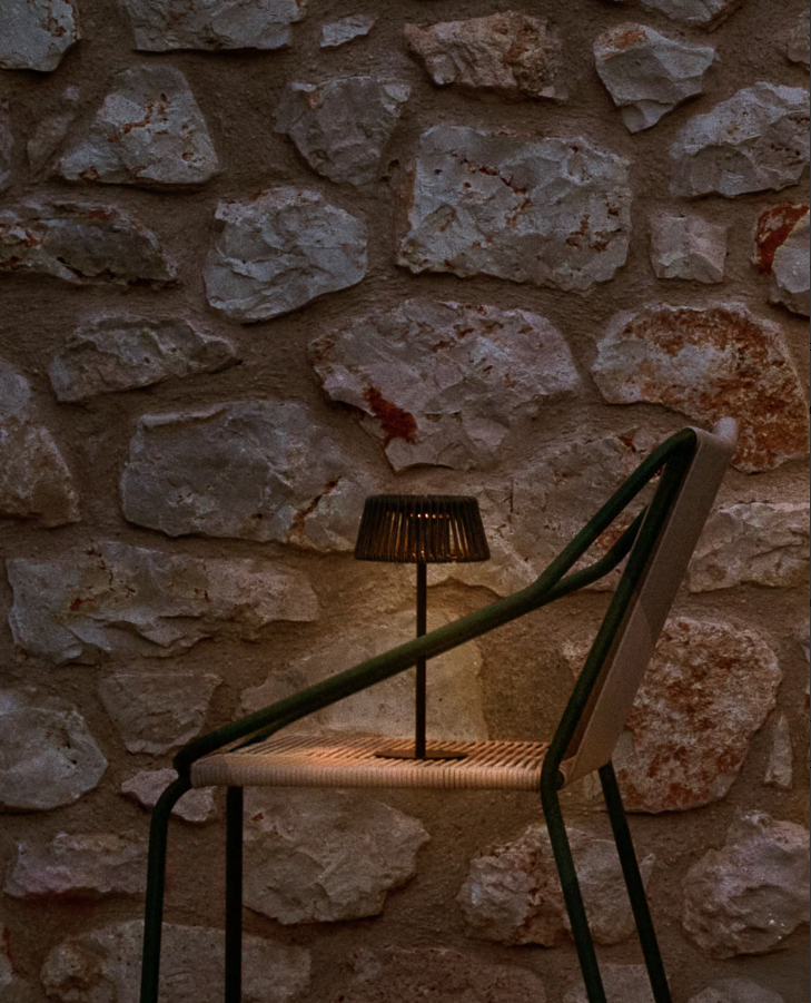Aldet zu stilvoll und tragbar Solartischlampefür bequeme Beleuchtung von Außenräumen. Lampenschirm aus einem gewebten grünen Seil verleiht ihm einen natürlichen und gemütlichen Charakter, perfekt passende Terrassen, Balkonen oder Gärten. Vielen Dank an den Grad des Schutzes IP44 Lampe Es ist resistent gegen Wetterbedingungen, wodurch es draußen großartig funktioniert.