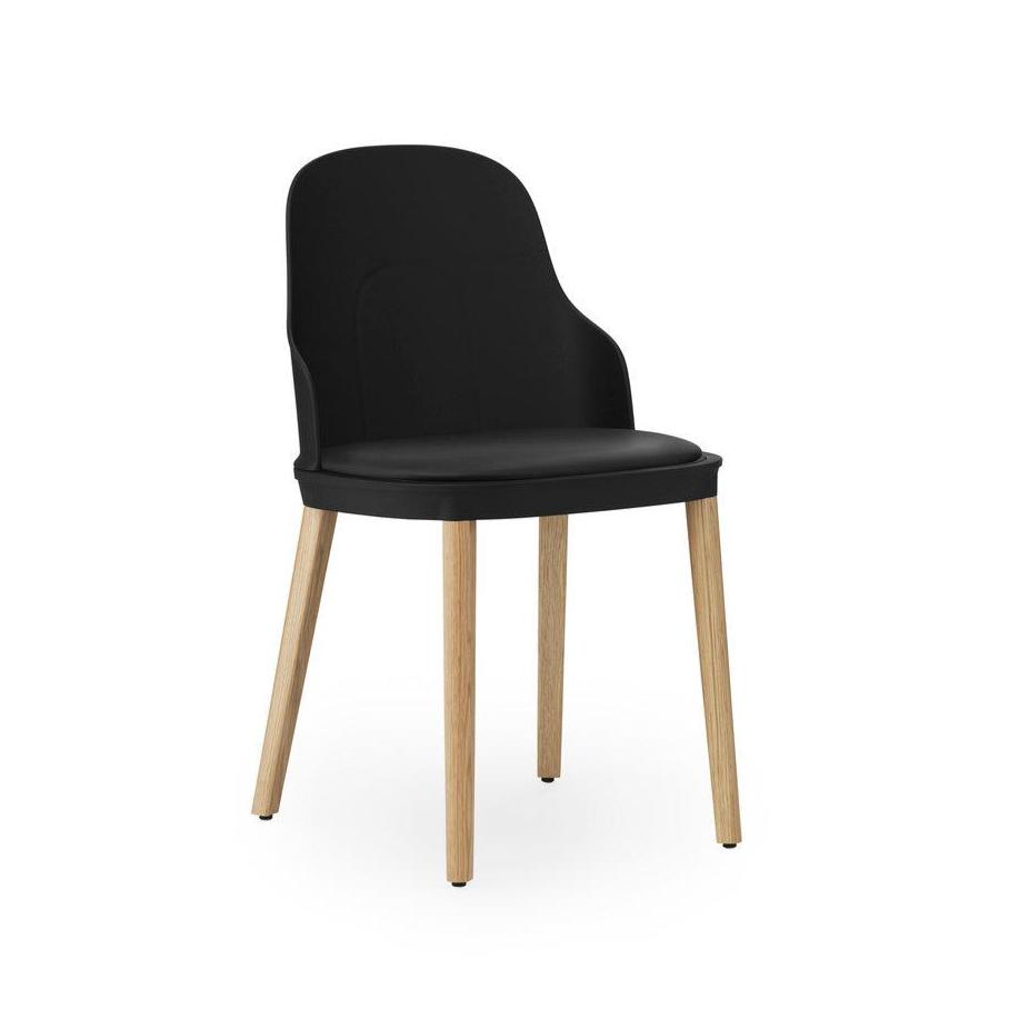 Allez schwarzer Stuhl mit Ultra -Leder -Polster mit einer Eichenbasis