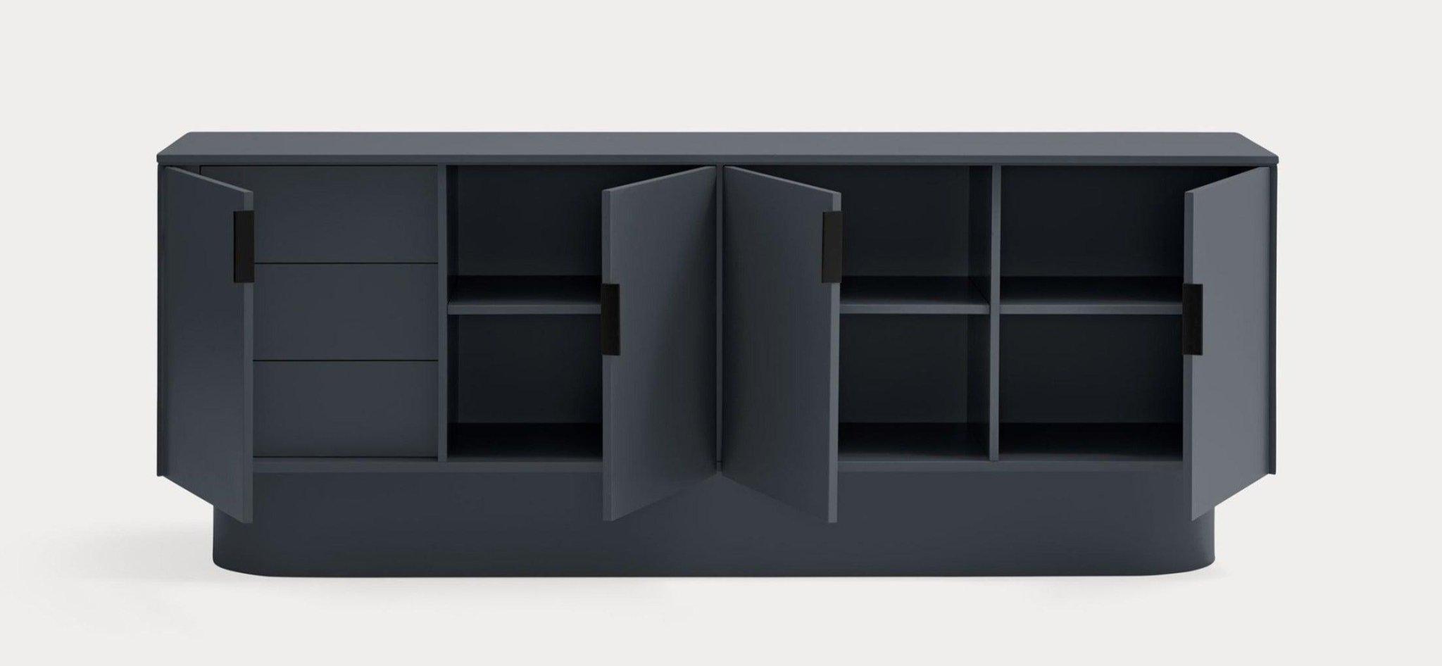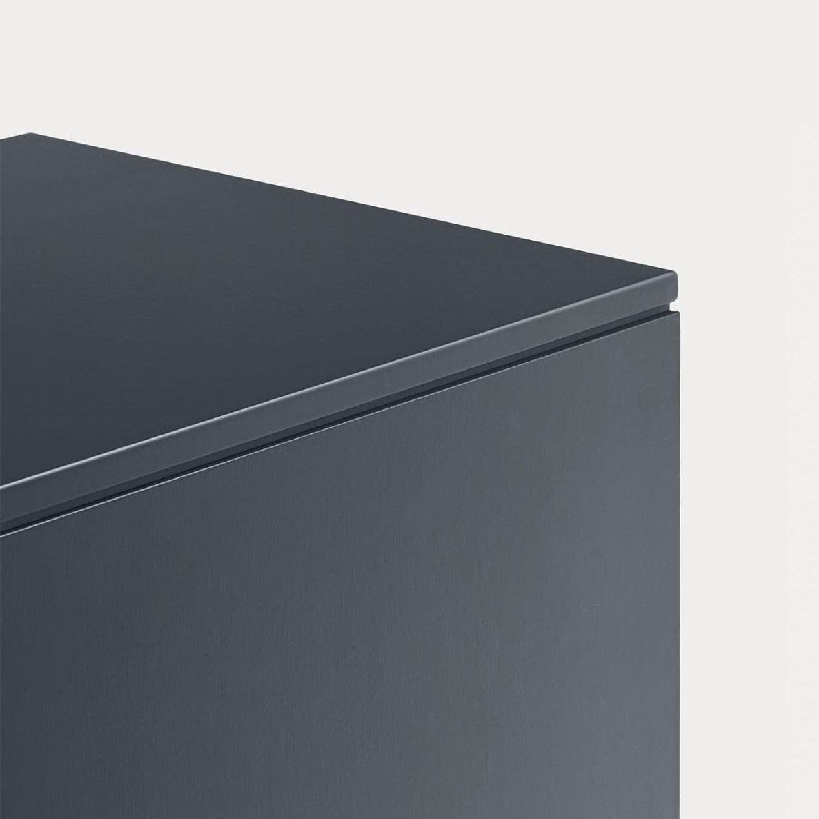 Kommode Totem in einer tiefen anthrazitischen Farbe erregt mit seinem fast monolithischen Erscheinungsbild Aufmerksamkeit und ermutigt uns, darüber nachzudenken, als wäre es ein skulpturales Werk, das die Grenzen zwischen Funktion und Form überschreitet.