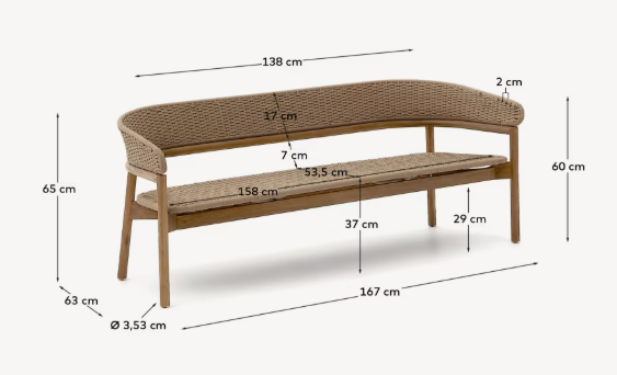 Die mit Pulverfarbe bedeckte feste Struktur aus verzinktem Eisen garantiert die Beständigkeit gegen Wetterbedingungen, und eine zusätzliche mit Wasser basierende Polyurethanbeschichtung schützt Holz und verlängert seine Lebensdauer. Das FSC ™ -Zertifikat 100% bestätigt, dass das Holz aus verantwortungsbewusst verwalteten Wäldern stammt, was macht Sofa umweltfreundliche Wahl. Um seine natürliche Schönheit jahrelang zu bewahren, wird empfohlen, regelmäßig Acacia -Holz zu erhalten.