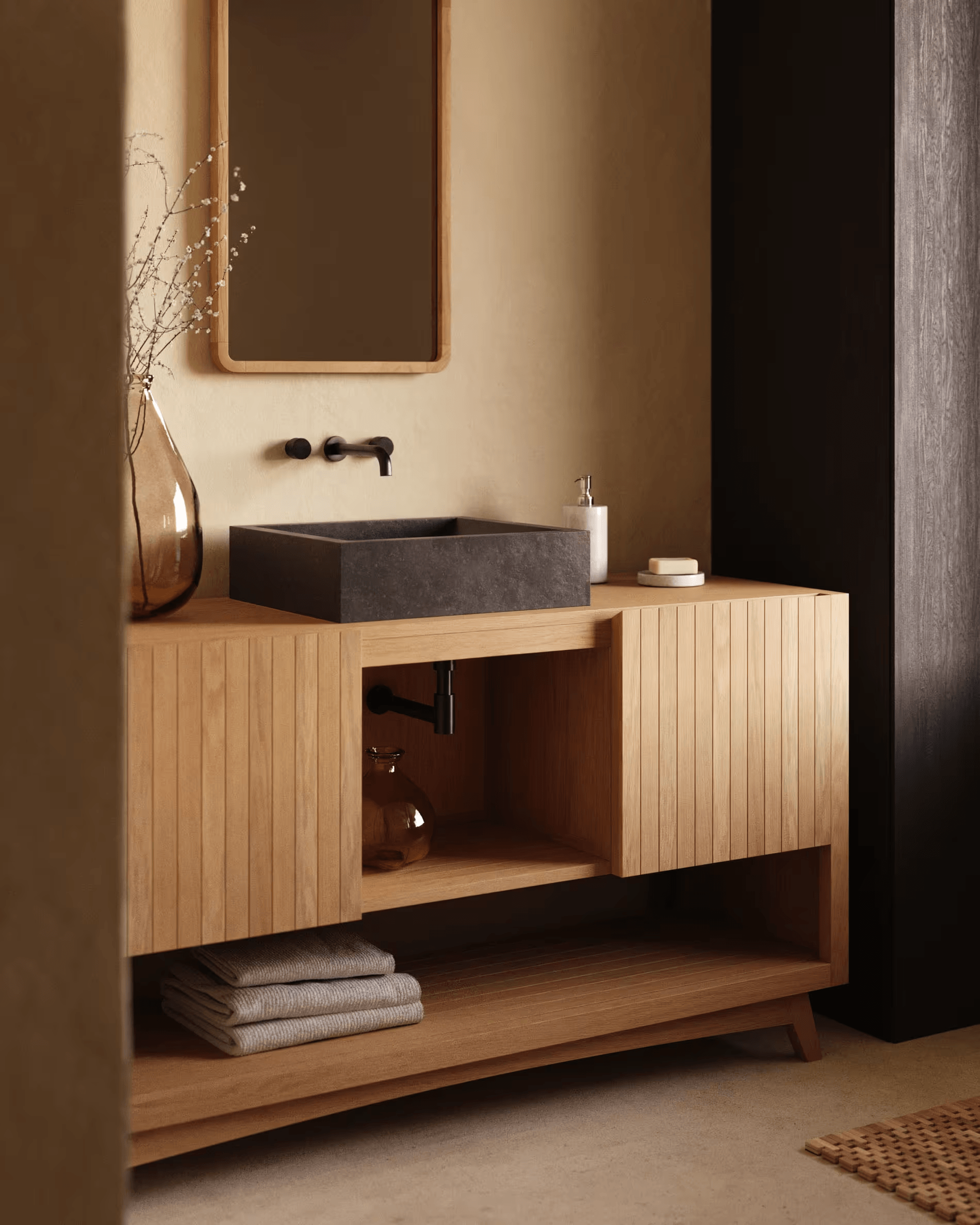 Die Kuveni -Kollektion besteht aus feuchtigkeitsresistentem festem Teakholzholz, sodass Sie sich in einem orientalischen und Designer -Spa entspannen können, ohne Ihr Zuhause zu verlassen. Zeigen Sie, dass Ihr Badezimmer auch stilvoll ist.