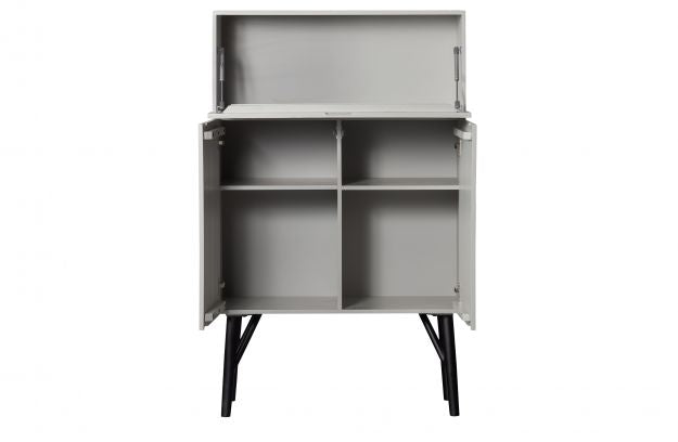 Der obere offene Raum ist ideal, um Brillen oder dekoratives Zubehör anzuzeigen, während der hintere Teil, der hinter der Tür versteckt ist, einen zusätzlichen Stauraum bietet. Schlaf, hohe Beine verleihen Leichtigkeit und moderner Akzent.