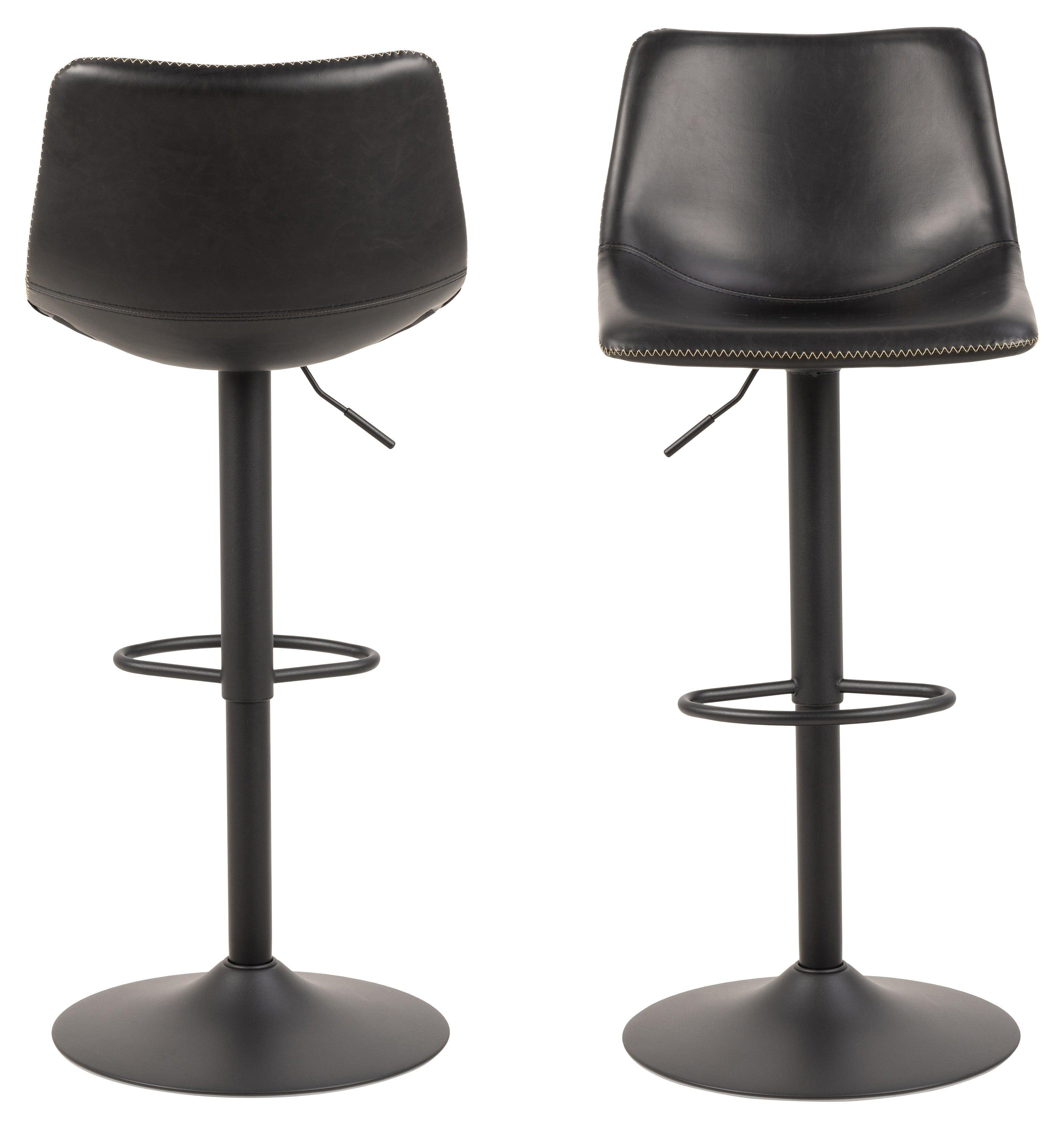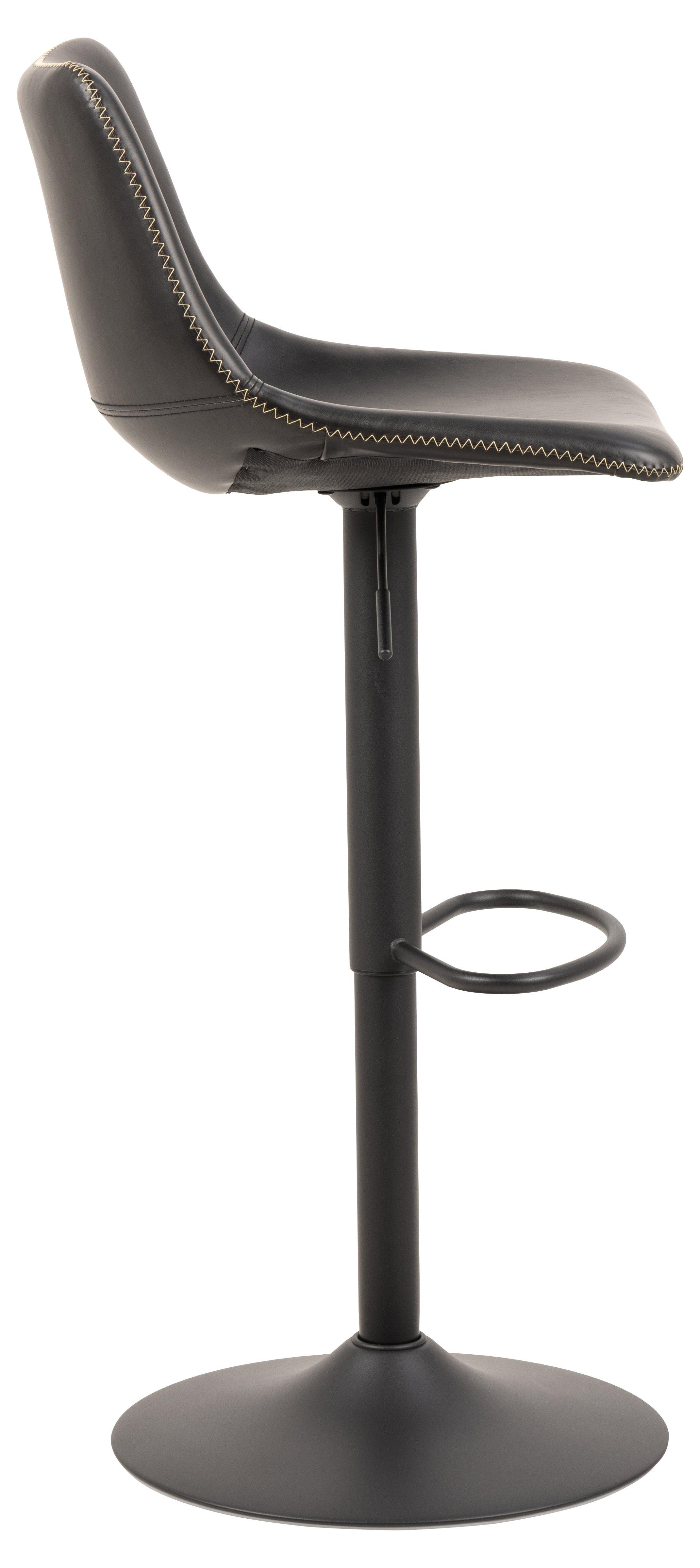 Barhocker Alva ist aus hochwertigem, schwarzem Kunstleder gefertigt. Dieses Modell wurde mit größter Sorgfalt auf jedes Detail hergestellt, was durch die präzise Naht, die eine zusätzliche Verzierung des Hockers darstellt, belegt wird.