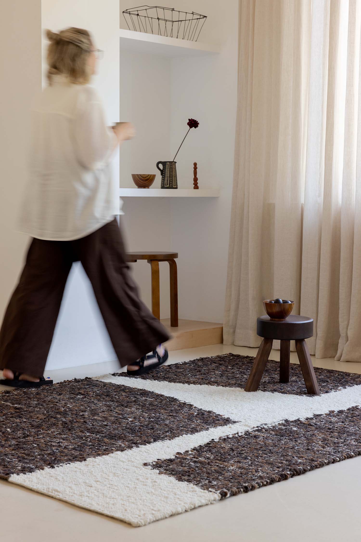 Erstellt nach der Methode des traditionellen Knotens durch erfahrene Handwerker aus der Region Uttar Pradesh in Indien, Teppich Es ist durch außergewöhnliche Stärke und Elastizität gekennzeichnet. Jede Kopie unterzieht sich dem Prozess des manuellen Waschens, wodurch die Qualität und die natürlichen Eigenschaften weiter betont werden. Craft verleiht dem Innenraum nicht nur eine subtile Eleganz, sondern verbessert auch die Akustik des Raumes, trägt zur Aufrechterhaltung der Wärme und trägt zur Luftreinigung bei. Dies ist eine ausgezeichnete Wahl für Menschen, die nach einer Kombination aus Ästhetik, Funktionalität und ökologischen Materialien suchen.