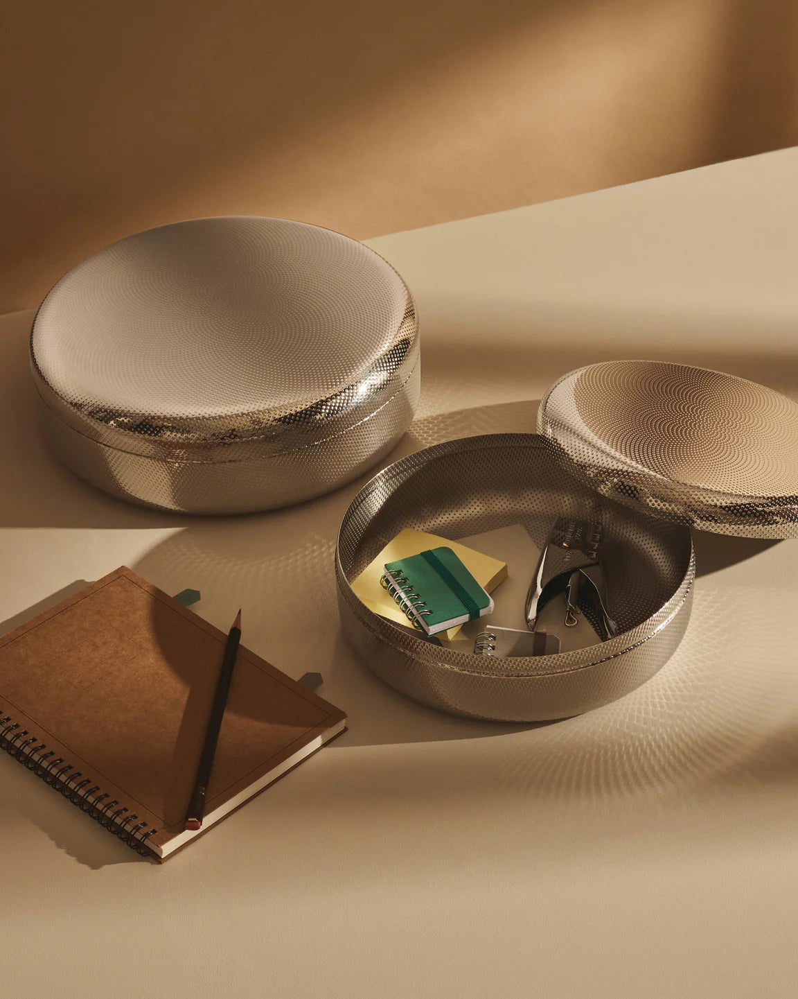 Container JM01 ist ein elegantes und vielseitiges Produkt, das perfekt als Ort für kleine Zubehör, Souvenirs oder Büro kleine Dinge aufbewahrt wird. Eine einzigartige Textur auf der Oberfläche verleiht ihm einen modernen Charakter, und eine präzise Verarbeitung von hochwertigen Materialien sorgt für die Haltbarkeit und Ästhetik. Dank verschiedener Größen kann es perfekt an individuelle Bedürfnisse und Raum angepasst werden.