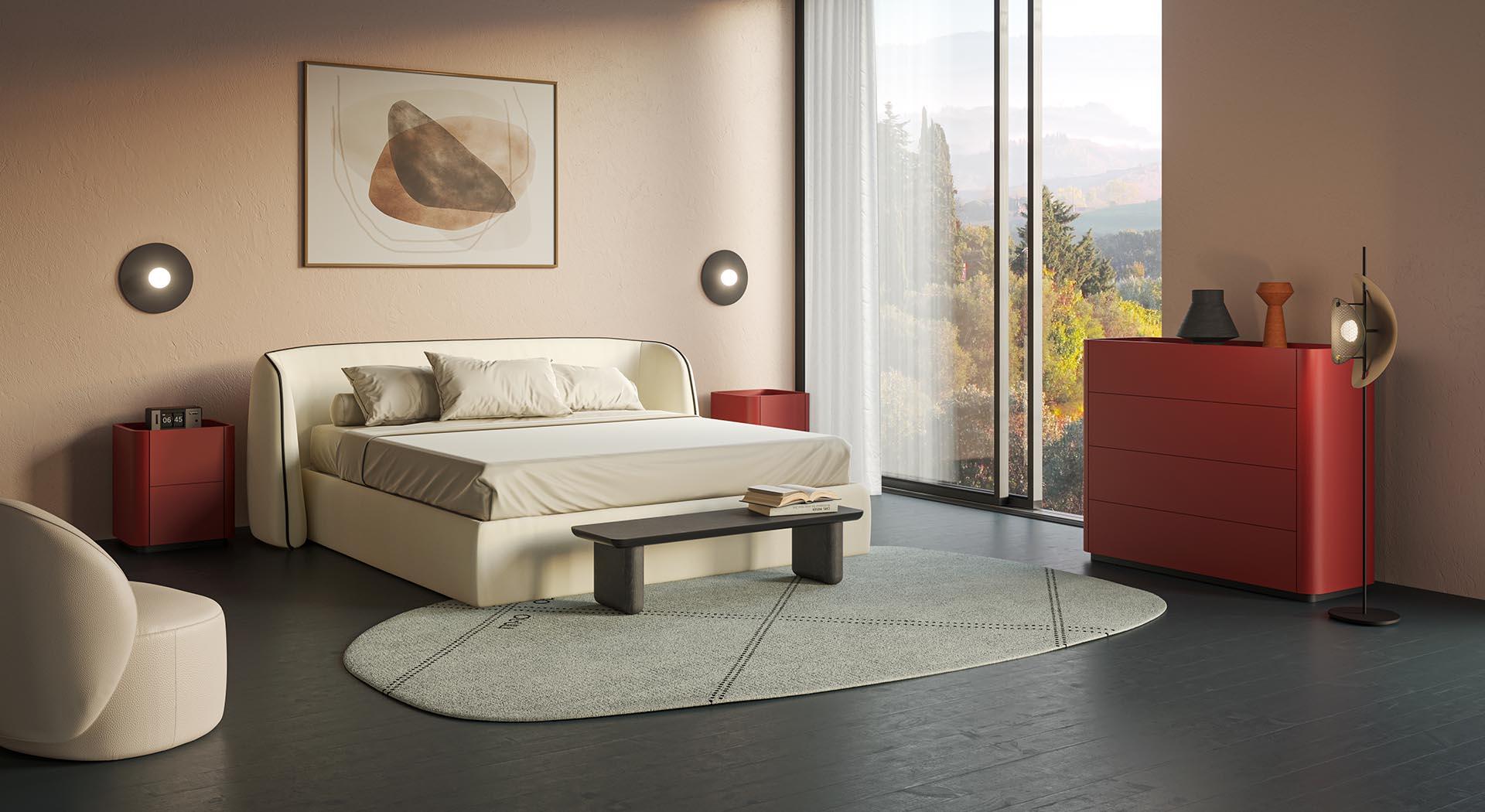 Auf Wunsch ist ein Bettwäsche-Set in den auffälligsten Farbtönen erhältlich, die perfekt zu den Stoffen der Kollektion passen, was es ermöglicht, das Bett an die Vorlieben und den Stil des Interieurs anzupassen.