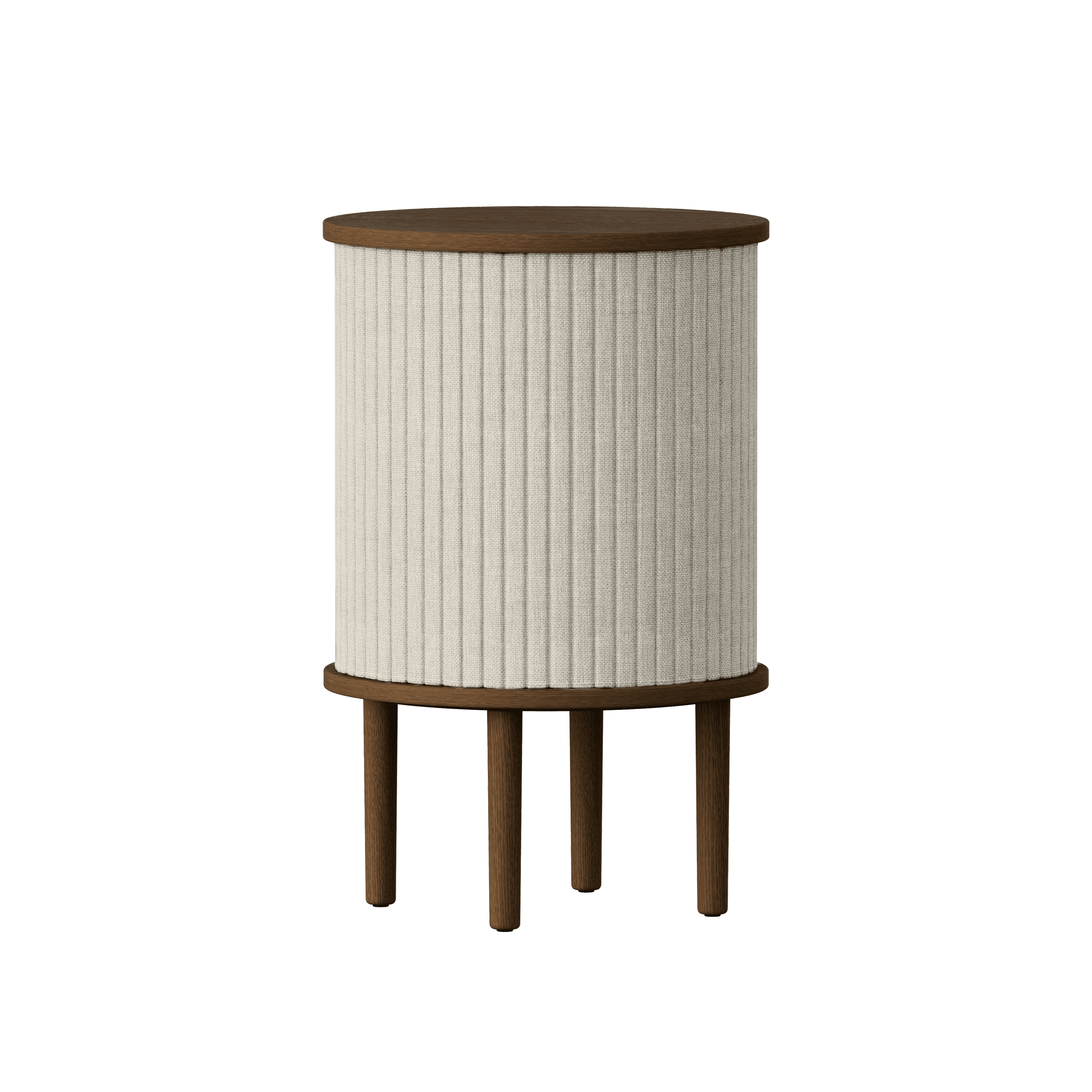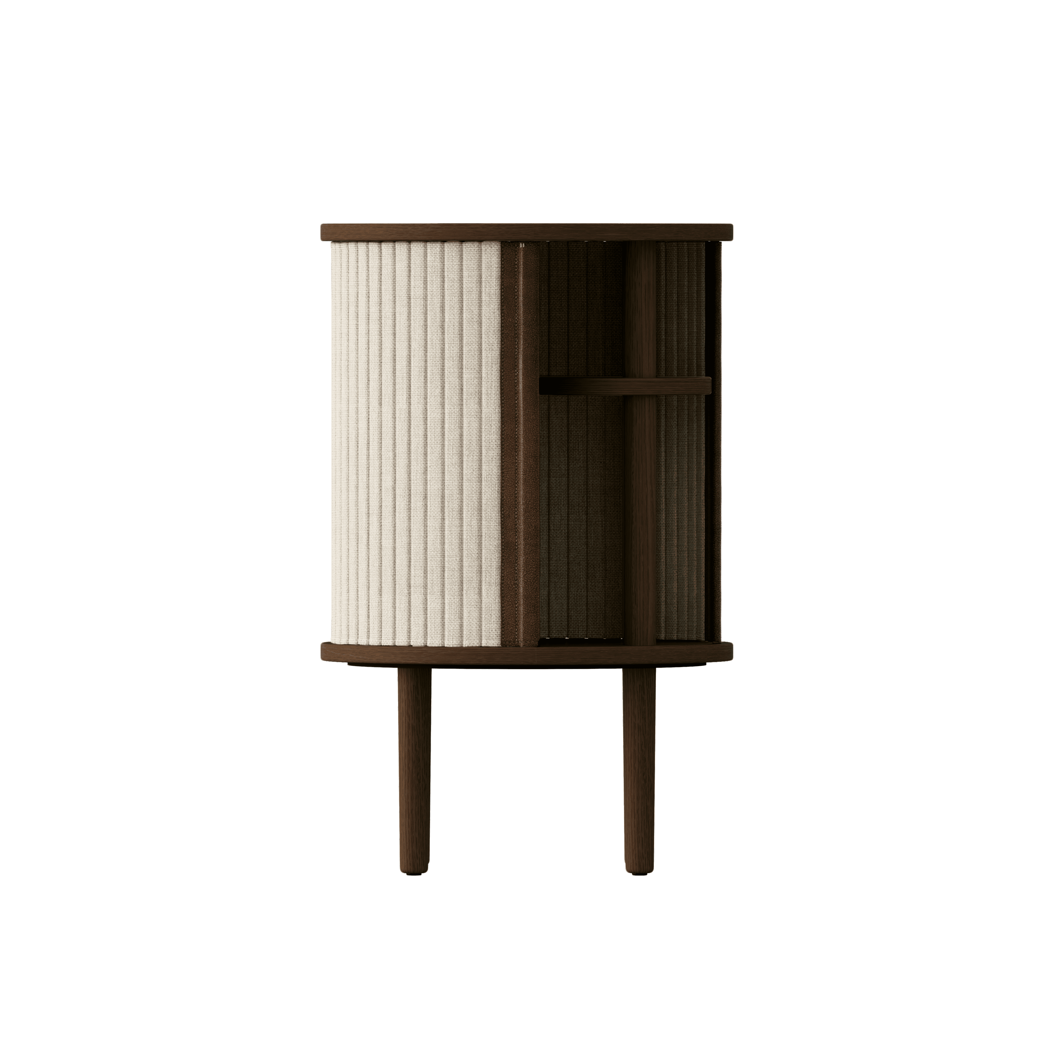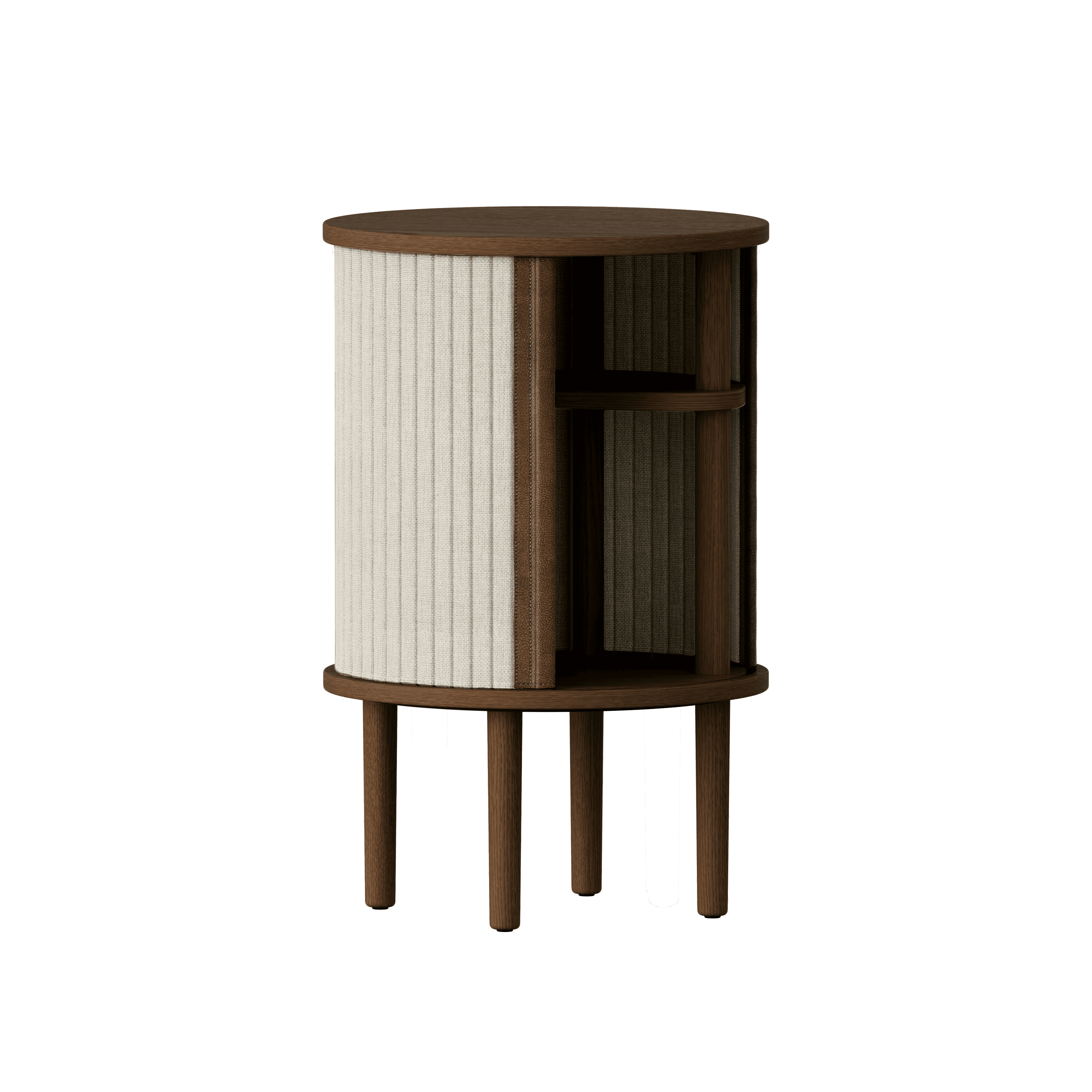 Erhältlich in drei Farben: natürliche Eiche, dunkle Eiche und schwarze Eiche mit Jalousien in vier sorgfältig ausgewählten Farben des Horizons, 100% recycelt. Die Jalousien sind austauschbar, was bedeutet, dass Sie sie leicht selbst ändern können und dem Projekt ein neues Leben hinzufügen können, ohne dass ein völlig neues Möbel gekauft werden muss, was gleichzeitig zur Rettung von Weltressourcen beiträgt.