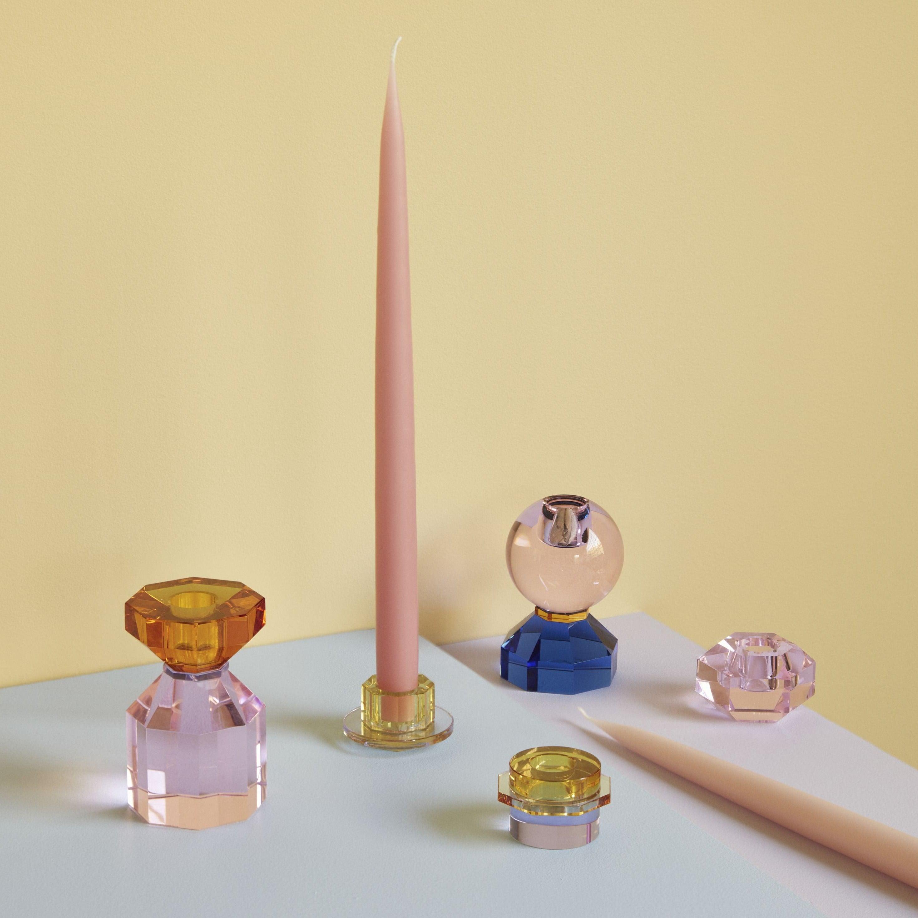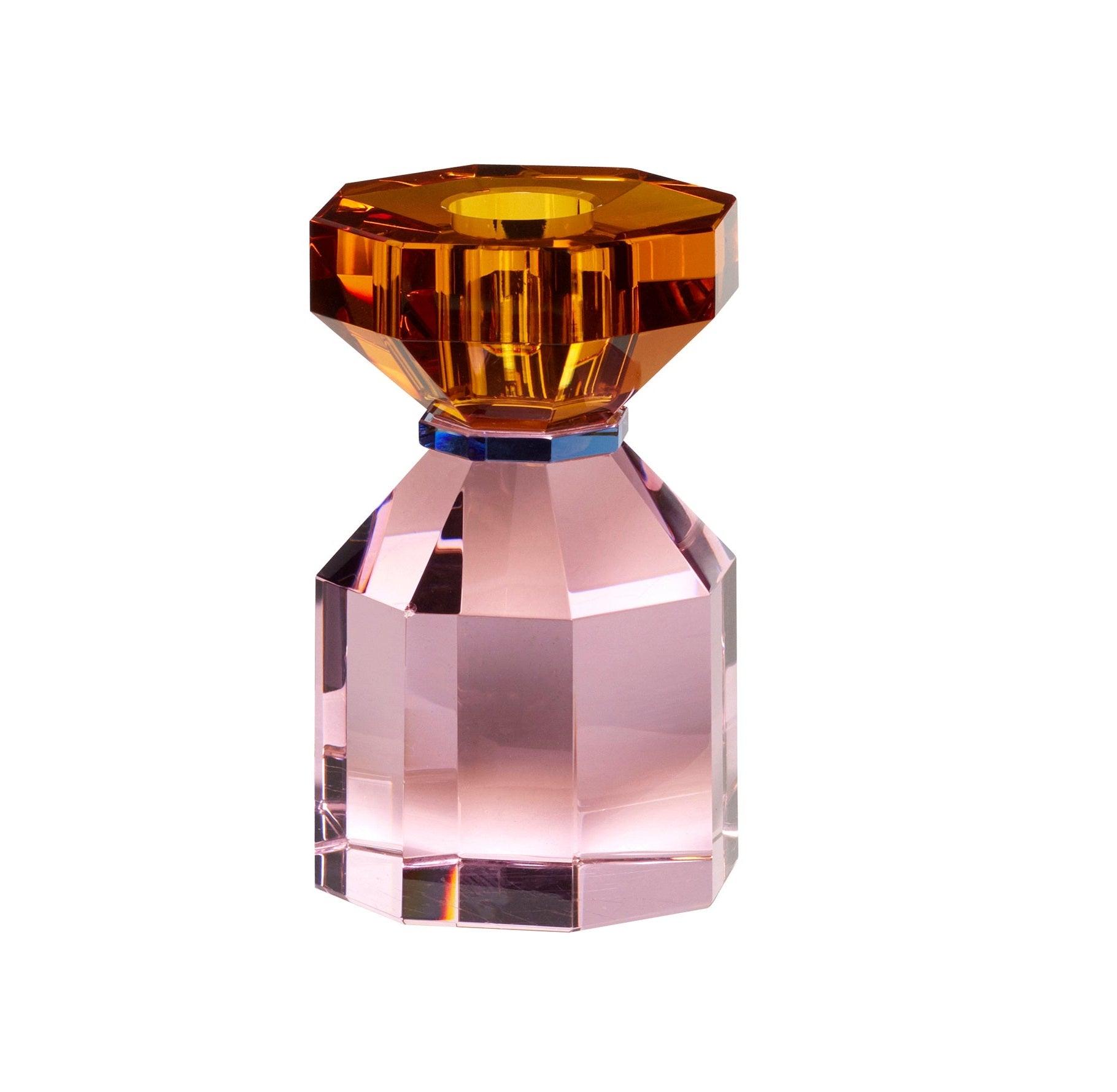 Świecznik GEM bursztynowy z różową podstawą Hübsch    Eye on Design