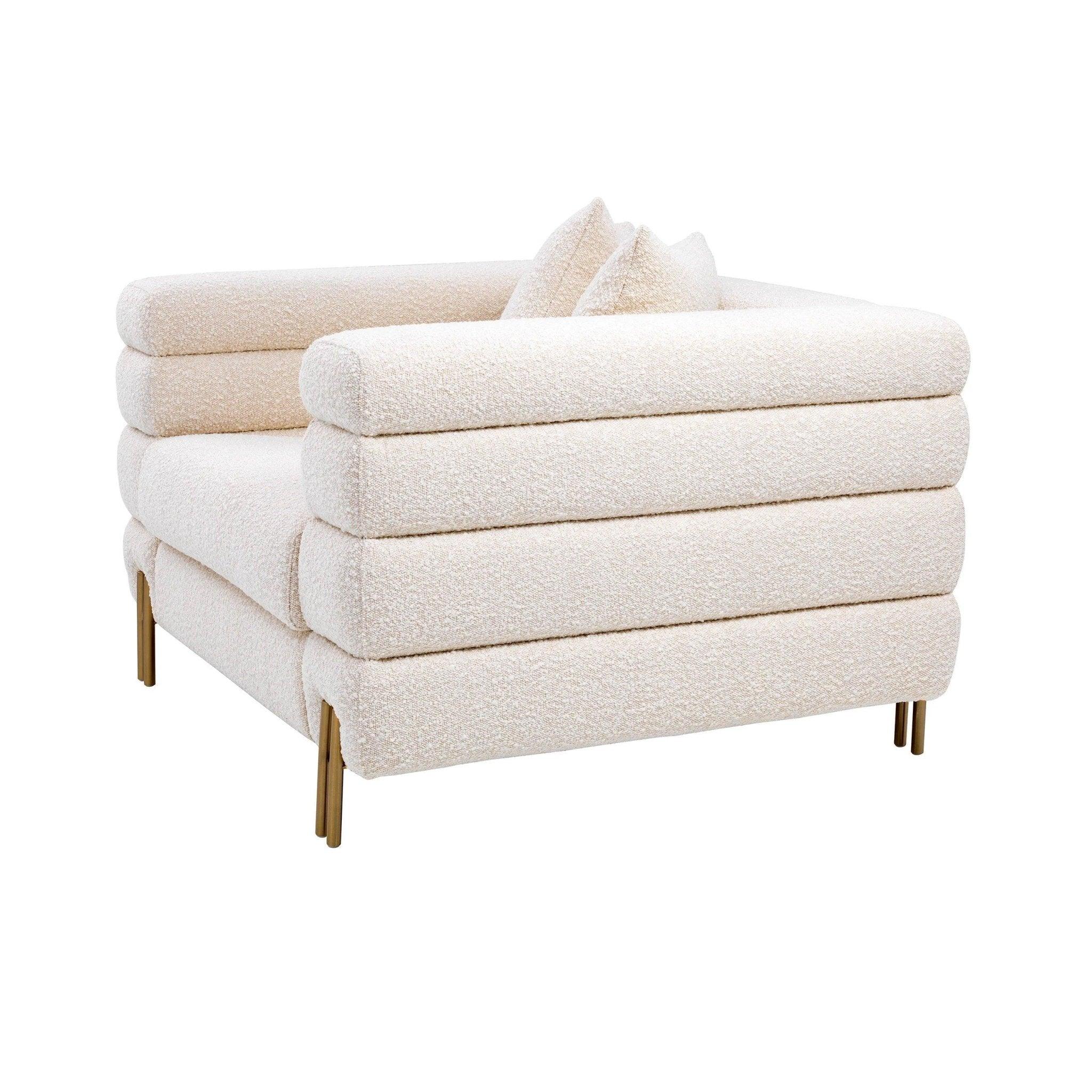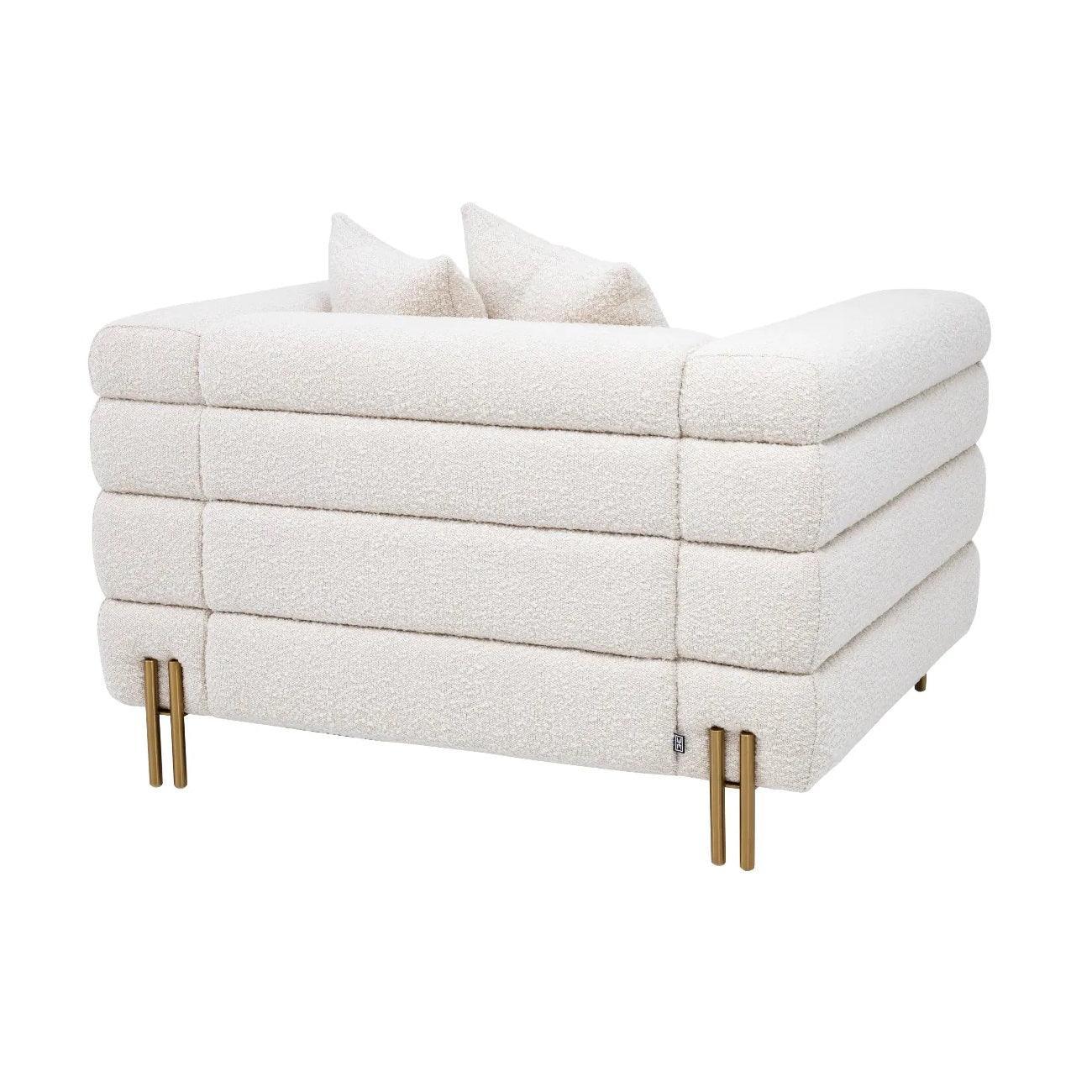 Der Sessel York ist eine wahre Ode an Stil und Eleganz. In cremigem Bouclé mit Beinen aus gebürstetem Messing strahlt er unverwechselbaren Charme und einen Hauch von Dekadenz aus.