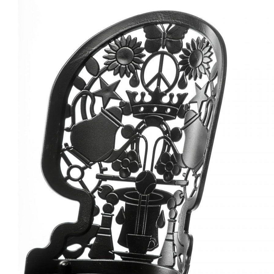 Einzigartig Gartenstuhl Im viktorianischen Stil in einer neuen Avant -Gart -Edition ist die Arbeit der italienischen Marke Seletti. Zurück und sitzen Sie verstecken zahlreiche, ungewöhnlich Muster wie Zahnräder oder Blumen, die dem Ganzen einen einzigartigen Charakter verleihen.
