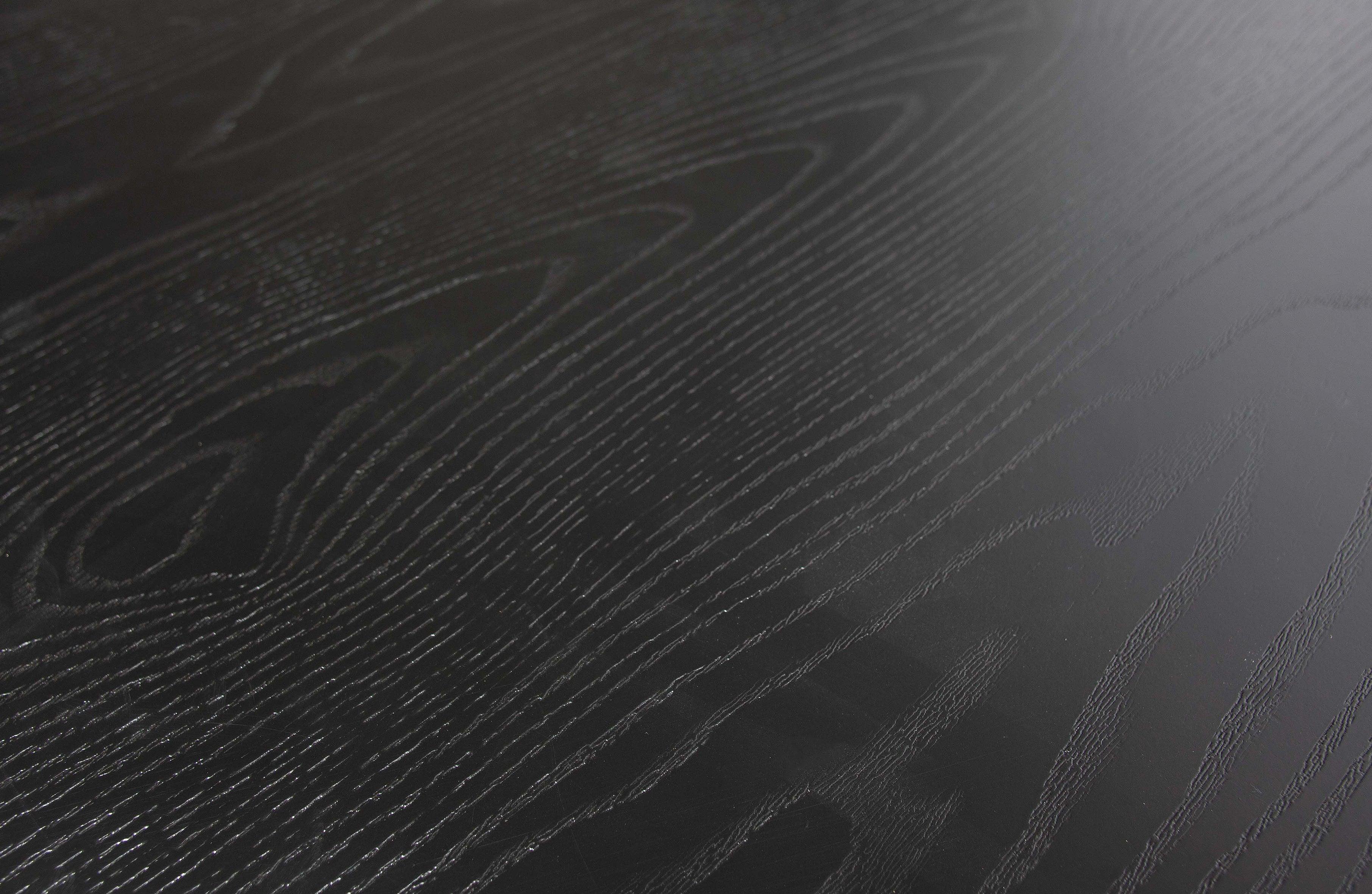 Esstisch Bruno wird mit Sicherheit eine leichte Eleganz in Ihr Zuhause bringen. Seine stabilen Stahlbeine garantieren Stabilität und ermöglichen es, verschiedene Arten von Stühlen rund um den Tisch anzuordnen. Die schwarze rechteckige Tischplatte sorgt für Langlebigkeit, während die sichtbaren Holzmaserungen ihm einen außergewöhnlichen Charakter verleihen.