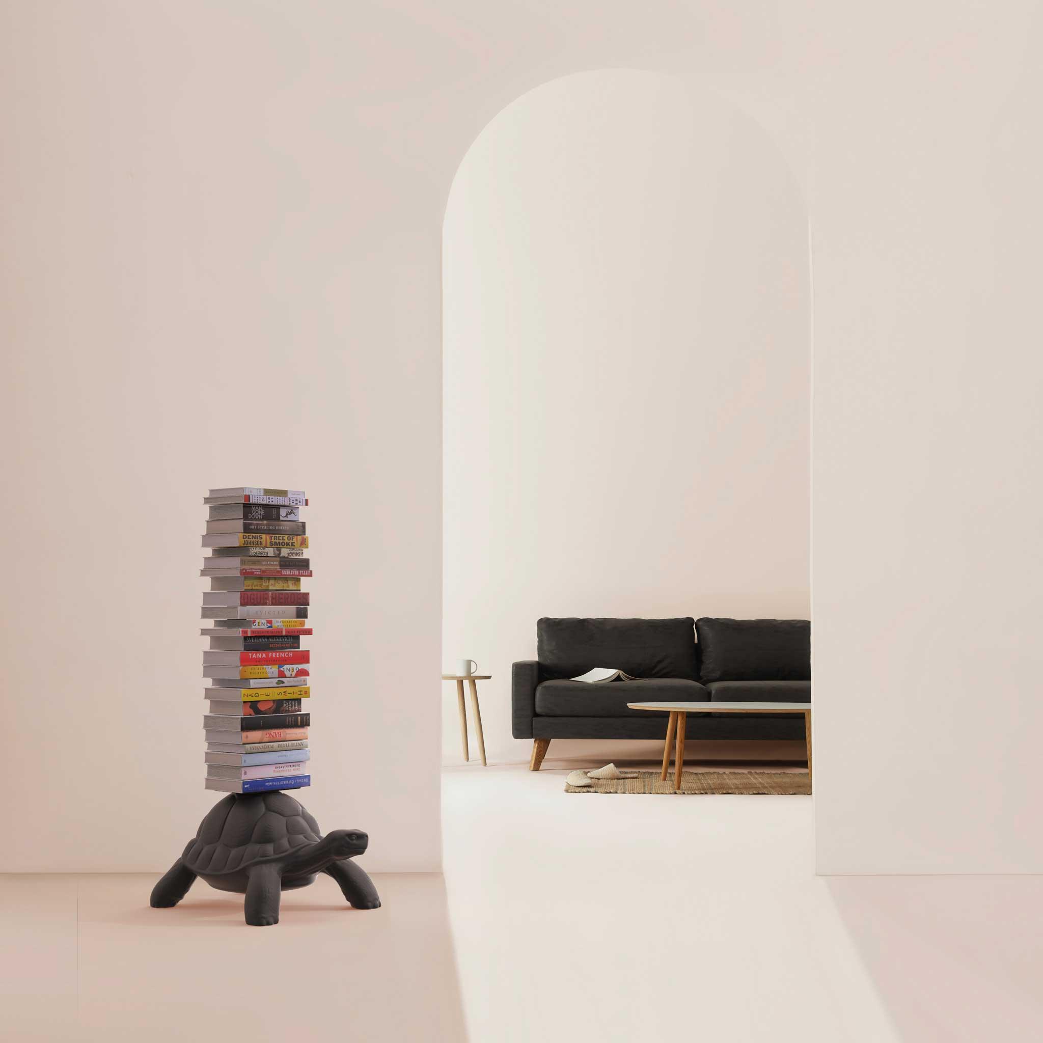 Der Schrank ist Teil einer fascinierenden Serie, die eine charmante Familie von Schildkröten mit verschiedenen Funktionen darstellt - sie können als Pouf, Blumentopf, Couchtisch oder eben als Bücherregal dienen. Inspiriert von der Natur und ihren etwas skurrilen Formen, hat der Künstler eine originelle und etwas lustige Konstruktion geschaffen, die in unsere Häuser ein einzigartiges Design und ein Lächeln auf die Gesichter der Gäste bringt.