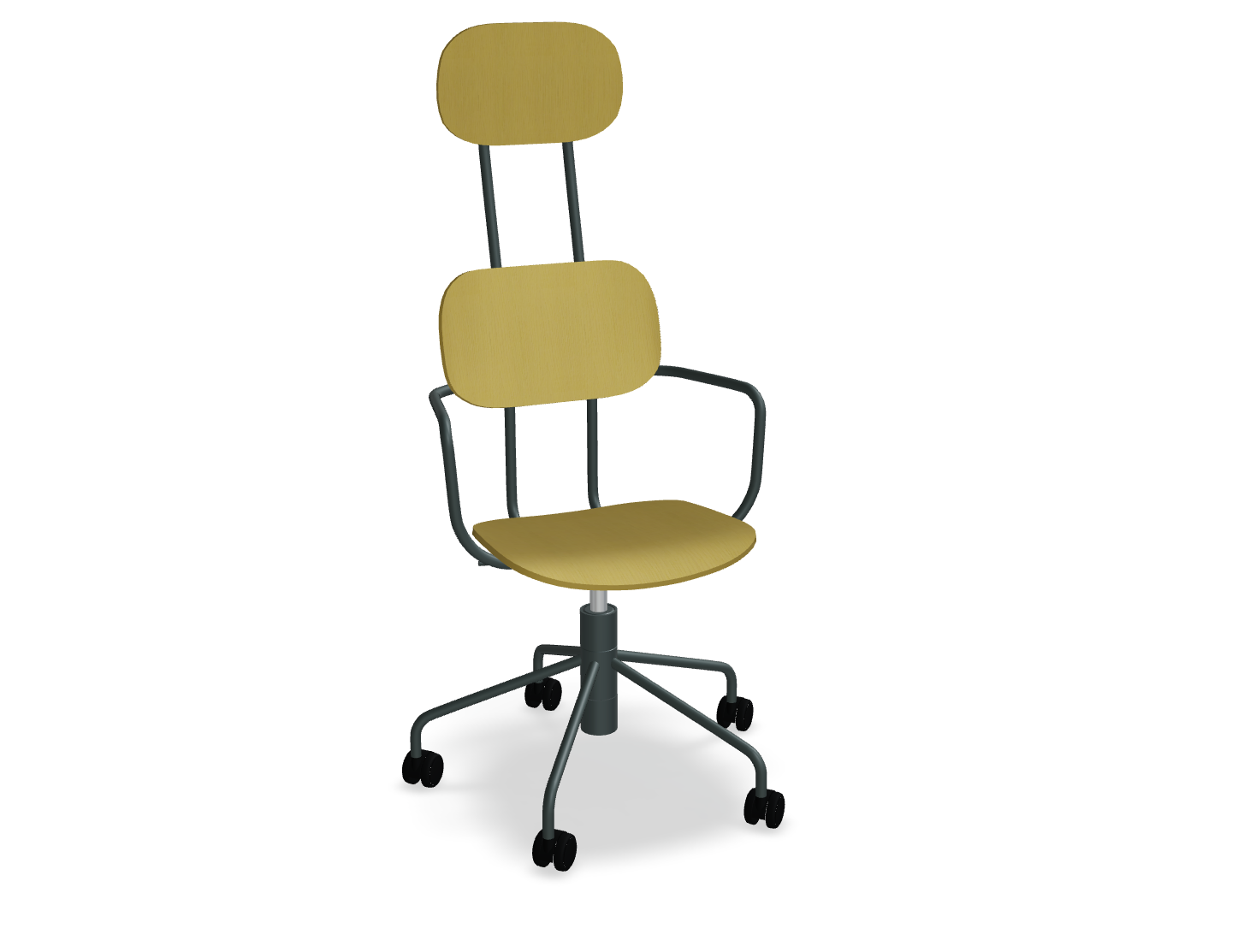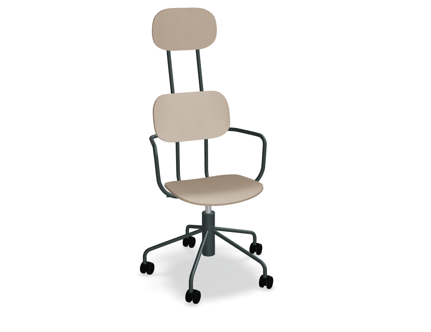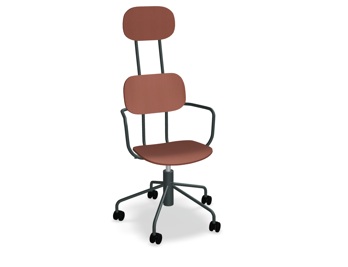 Sitzhöheeinstellung im Bereich von 440-540 mm und eine fünffachen Basis mit Rädern erleichtert die Einstellung des Stuhls an die Bedürfnisse des Benutzers. Moderne Form, inspiriert von traditionellen Schulstühlen, ist in verschiedenen Farben erhältlich, sodass Sie interessante Akzente in das Innenraum einführen können.