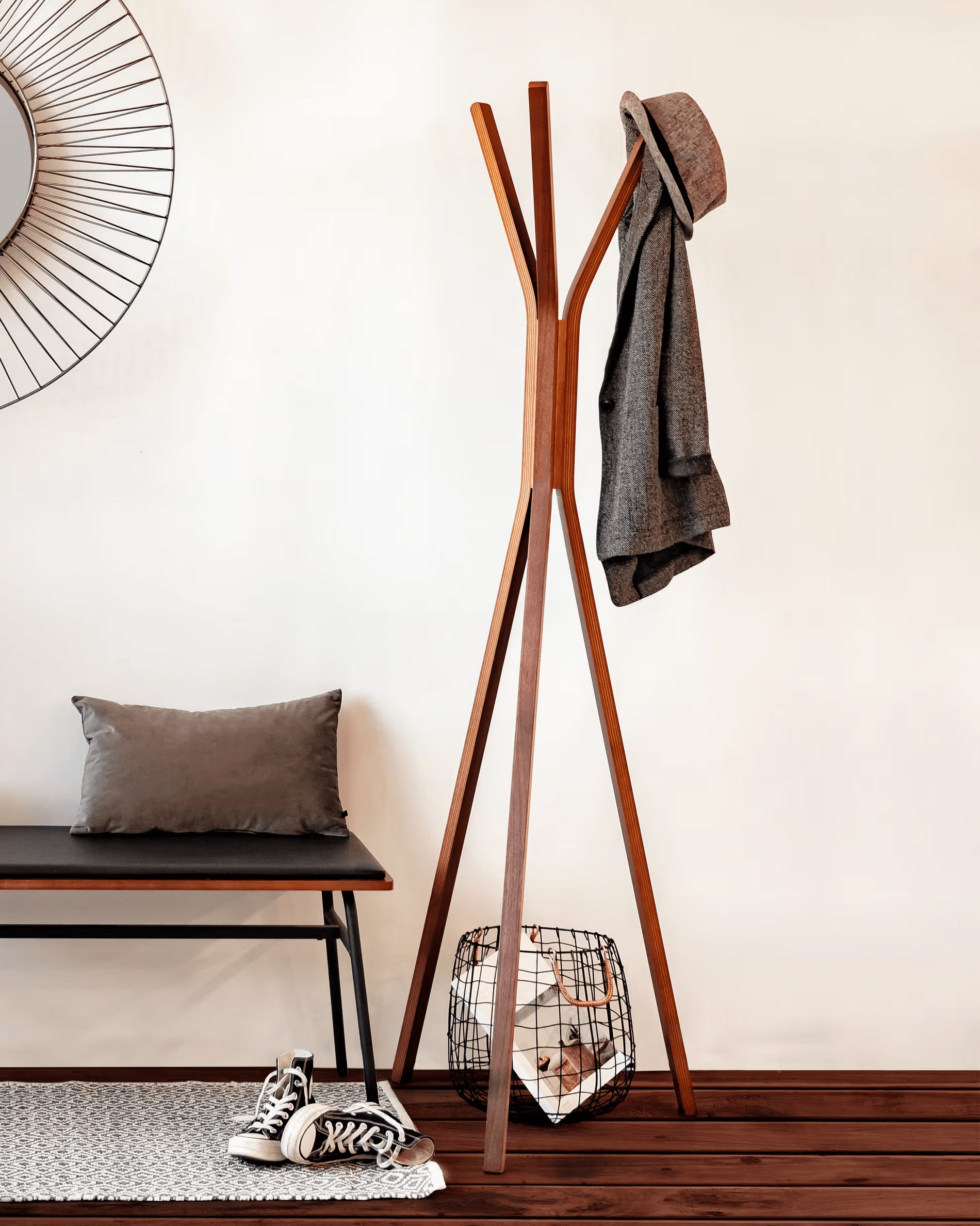 Einfachheit, ohne den Stil aufzugeben. Der Chelsey -Kleiderbügel aus massivem Gummiholz mit einer Nussfinish ist ein ideales Element der Dekoration Ihres Eingangs und/oder des Schlafzimmers. Darüber hinaus können Sie mit seiner Größe Kleidung hängen, ohne den Boden zu berühren.