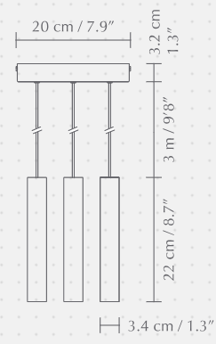 Die Inspiration für Chimes Cluster 3 sind die zarten Linien, die im dichten Wald vorhanden sind, wo die Bäume nahe beieinander werden. Diese Lampen haben so konzipiert, dass die schlankste Form wie möglich erreicht wird, und haben einen Scheinwerfereffekt, der das Licht genau dort zusammenbringt, wo es benötigt wird.