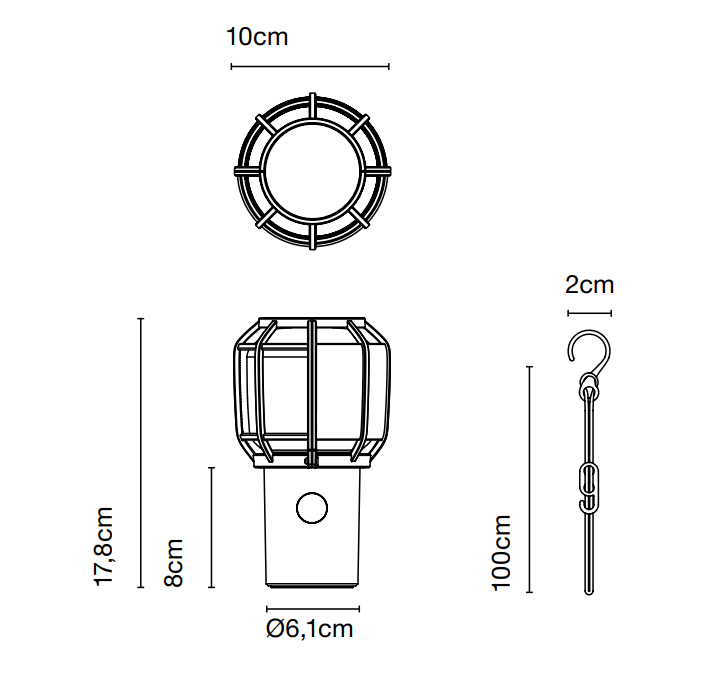 Außerhalb ist sein Design durch einen Kühlergrill geschützt, der die Lichtquelle dreht. Das niedrige Gewicht der Chispa -Lampe ermöglicht es Ihnen, sie zum Auto zu bringen, zum Wandern, Campen, auf Bootsfahrten zu wandern. Es enthält auch ein Zubehör für die Aufhängung und die Aufhängung von Esstischen und Gärten.