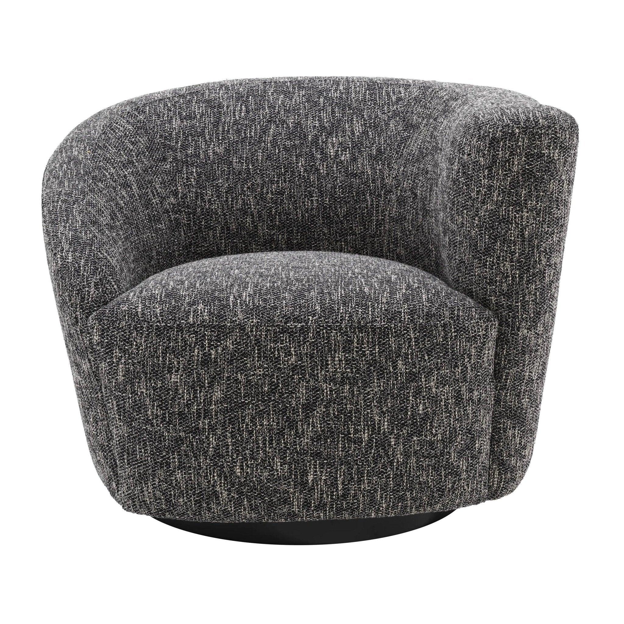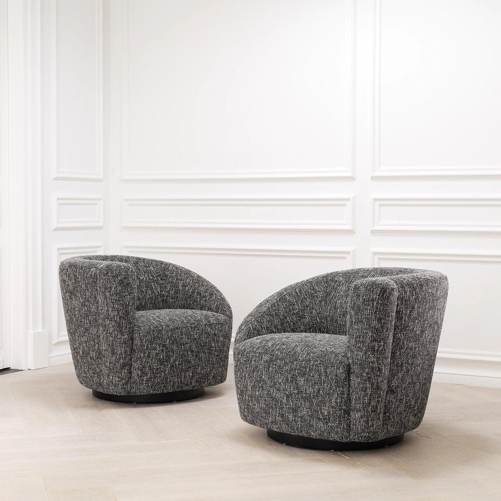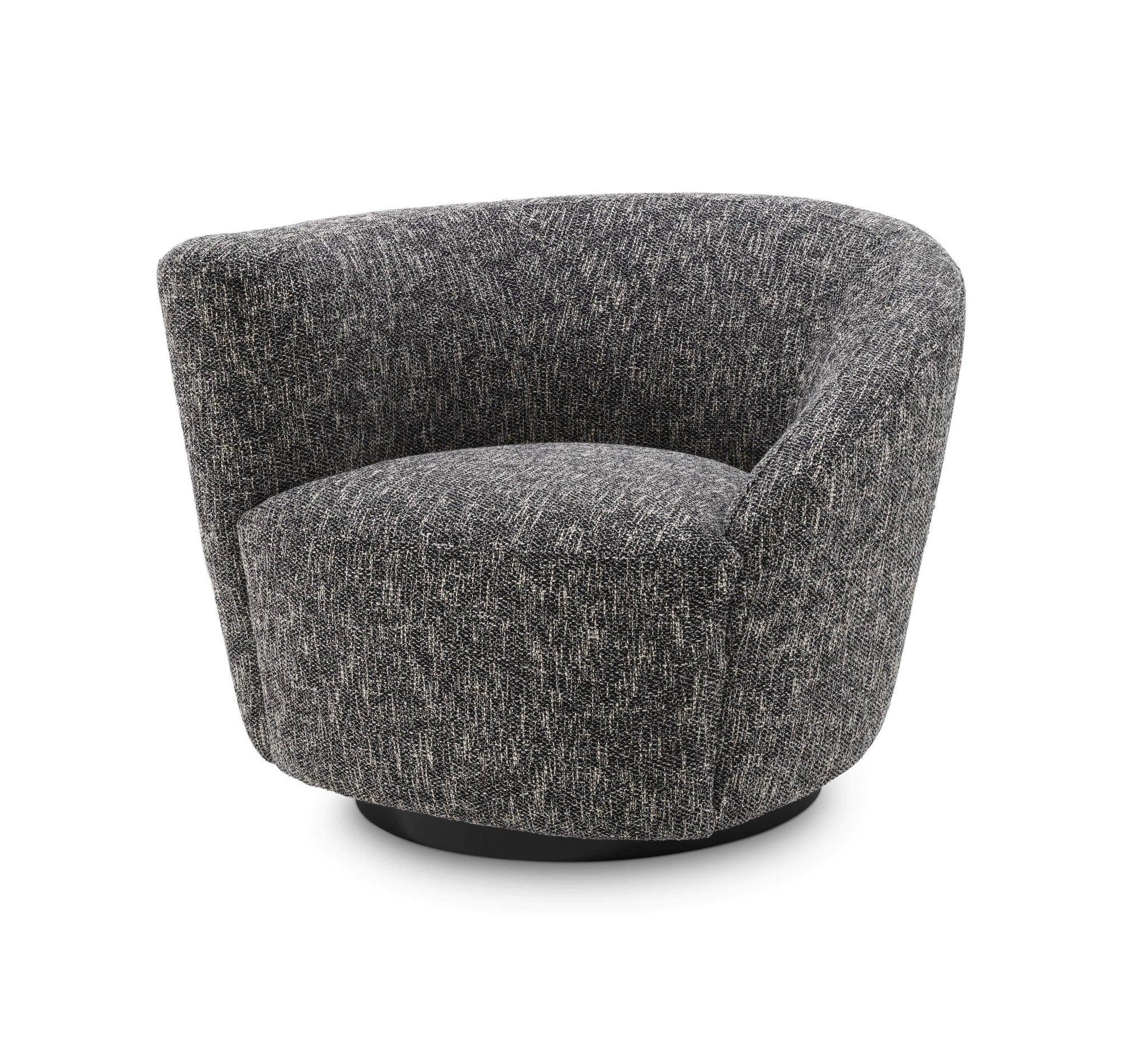 Grau melierter Stuhl Colin ermöglicht es, interessante Kompositionen im Raum zu schaffen. Sein Bezug aus dem natürlichen Material Pausa garantiert Komfort und Qualität, während das schwarze Drehgestell ihm einen modernen Charakter verleiht.