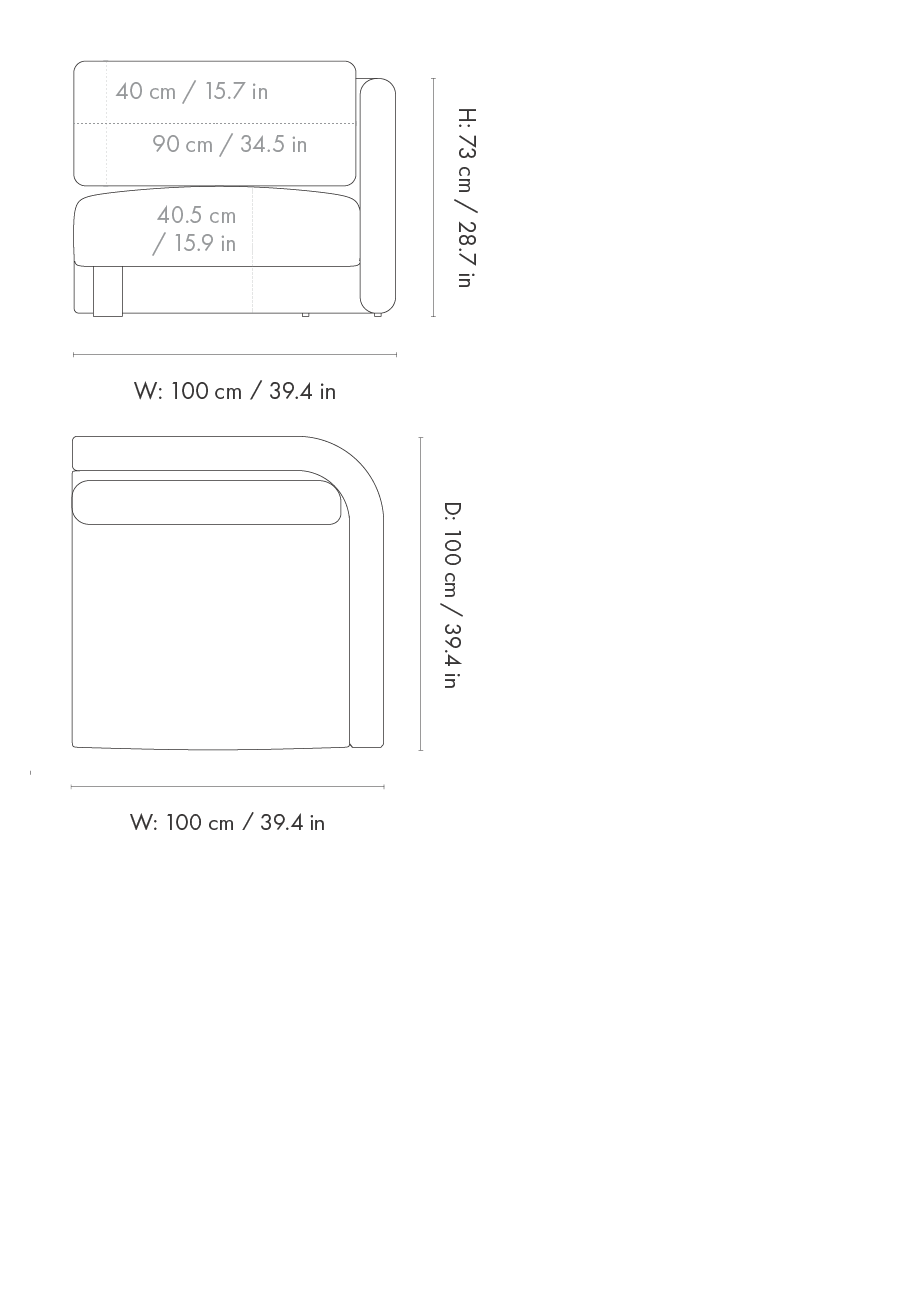 Das Modul ist mit zwei Beinen-Sets ausgestattet – gepolstert in der Farbe des Sofas sowie aus Holz in einem dunklen Farbton, was die Möglichkeit zur Personalisierung des Aussehens des Möbelstücks bietet. Hergestellt aus zertifiziertem FSC™-Holz, garantiert es hohe Qualität und Langlebigkeit. Sofa Dase ist Teil der Made to Order-Kollektion, die die Auswahl der Polsterung aus einer breiten Palette von Stoffen und Farben ermöglicht und so die Schaffung eines Möbelstücks ermöglicht, das perfekt zum individuellen Stil des Raumes passt.