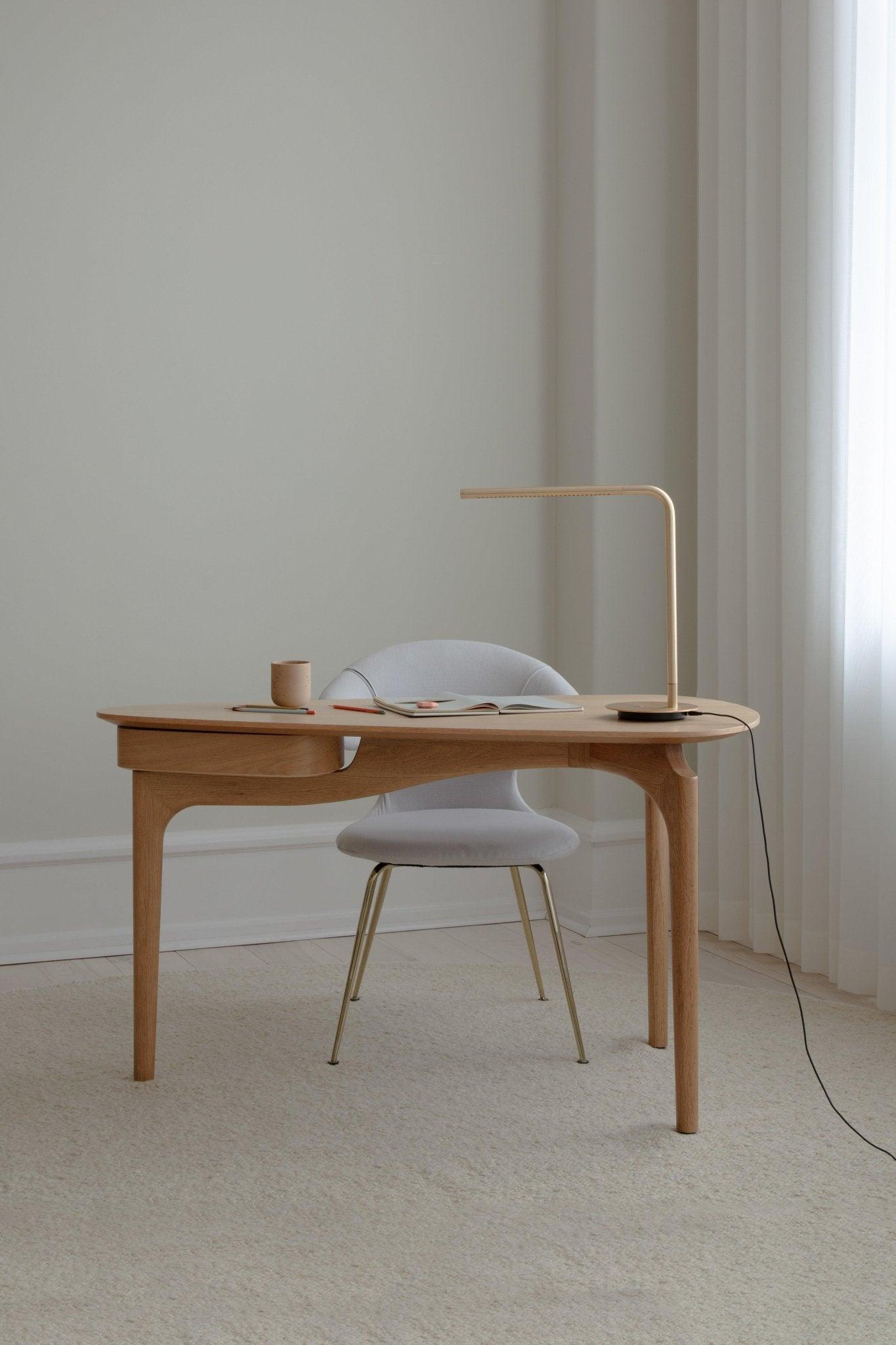 Organische Schreibtischform Es gibt dem Projekt Leichtigkeit, wodurch Duende zu einem Designerelement wird, das mit allen Raum und Einstellungen anmutig ist. Die weiche dreieckige Form der Arbeitsplatte verleiht dem Tisch eine ausgefeilte Ästhetik, während er den Mindestraum abdeckt und gleichzeitig den richtigen Arbeitsraum bietet. Sie können sie in die Ecke des Schlafzimmers oder des Wohnzimmers als subtile, aber ideale Ort zum Konzentrieren während der Arbeit zu Hause stellen oder zentral im Büro platzieren, sodass magische Kurven den Raum wiederbeleben können.