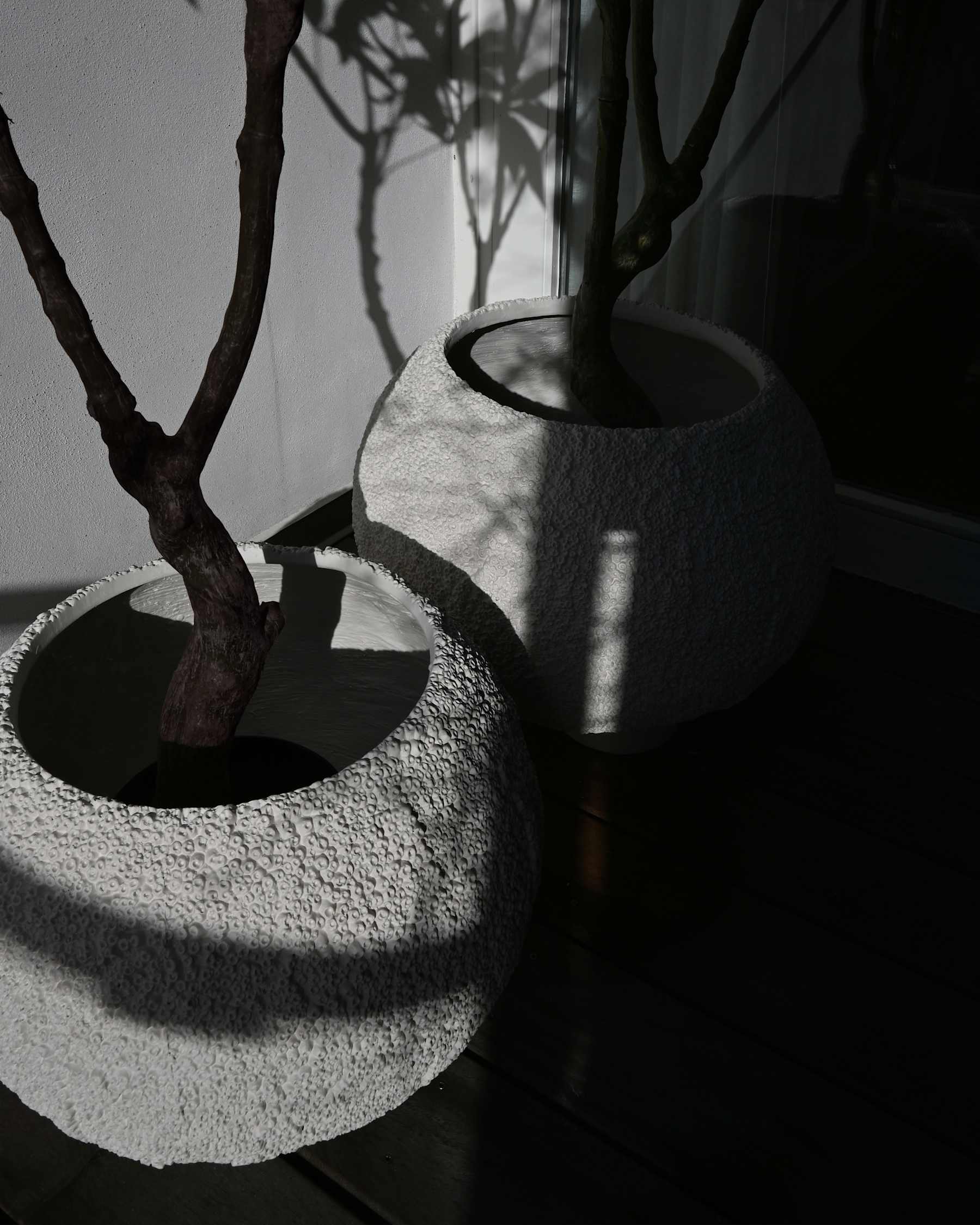 Eine Symphonie der Texturen, inspiriert von der Struktur eines Bienenstocks, pulsiert mit organischer Schönheit und lädt zum Berühren ein, während sie die künstlerische Sprache der Natur unter den Fingern offenbart. Die Oberfläche entstand aus zarten Abgüssen von Muscheln, die an windgepeitschten Küsten gesammelt wurden, und trägt die Erinnerung an die Gezeiten, das Flüstern des Ozeans und die komplexe Geschichte der Erde in sich. Jede Rippe und jede Krümmung ist eine Hommage an die stille Bewunderung für die Formen, die die Natur schafft – ein zeitloses Gefäß, geformt von Land, Meer und Vorstellungskraft.
