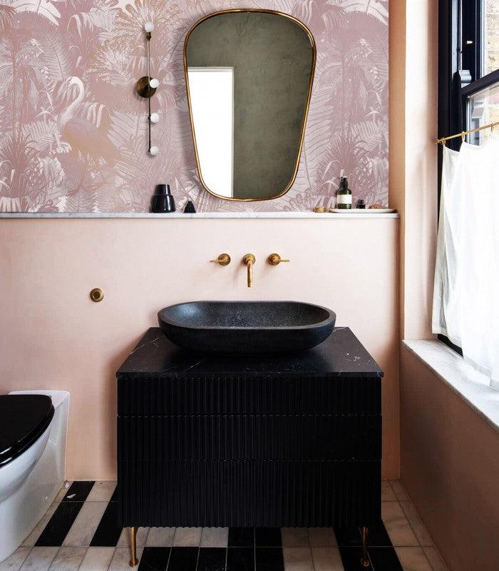 Die Tapete Desert Tropics Pink bringt die Atmosphäre eines geheimnisvollen, rosa Gartens in Ihr Zuhause. Das raffinierte Muster mit zarten Vögeln und üppiger Vegetation verleiht jedem Raum Eleganz und subtile Anziehungskraft. Perfekt für das Schlafzimmer oder das Wohnzimmer, schafft sie eine ruhige, aber stilvolle Stimmung.