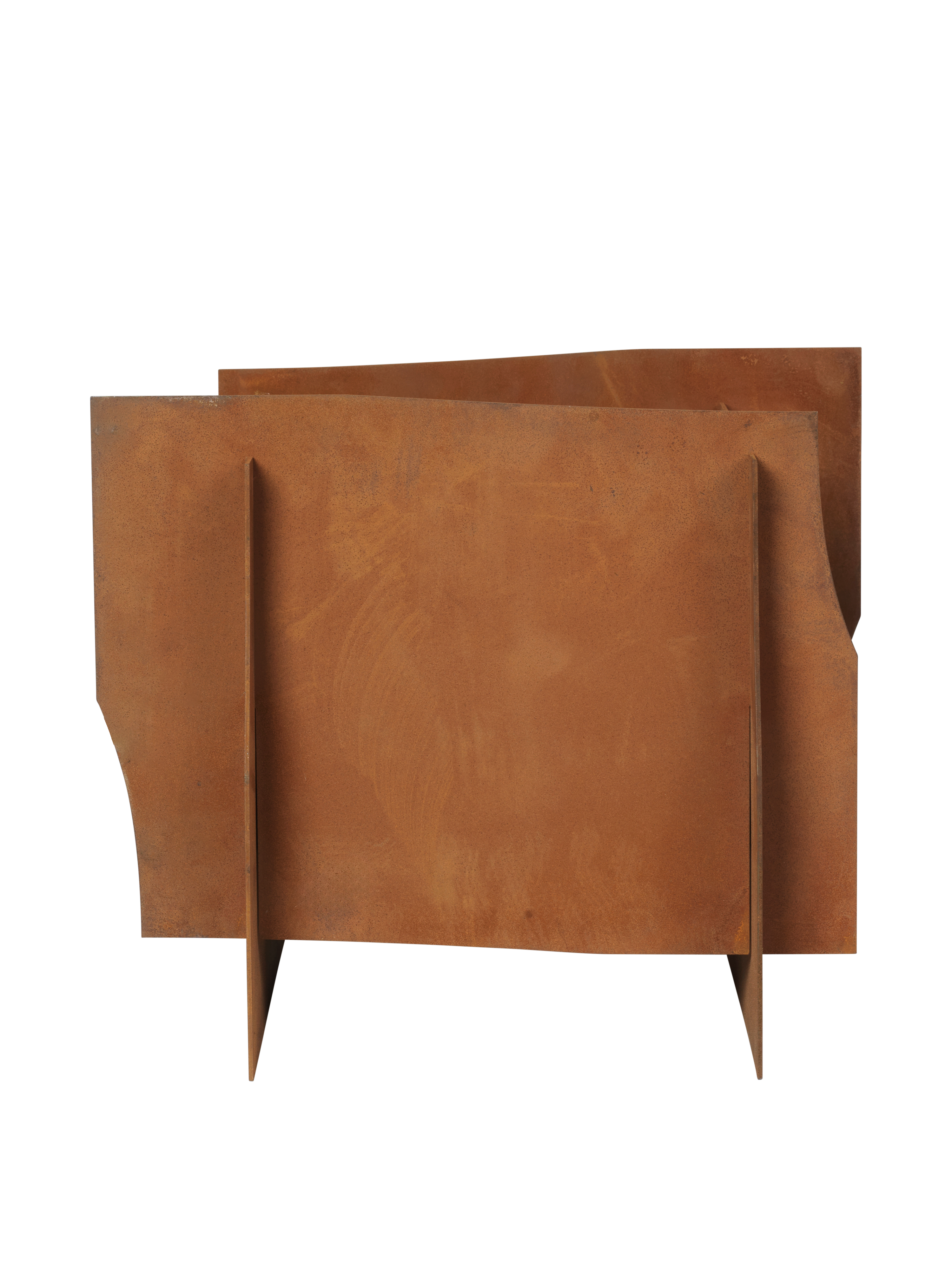 Donica Lapel ist eine moderne Gartenform, die aus wetterbeständigem Cortenstahl gefertigt ist und im Laufe der Zeit ein einzigartiges, rostiges Aussehen annimmt. Sie besteht aus dünnen, sich überlappenden Blechen und schafft eine visuell leichte, aber gleichzeitig stabile Konstruktion. Ihre asymmetrische Form, inspiriert von zerknittertem Karton, verleiht dem Raum einen rohen und designorientierten Charakter.