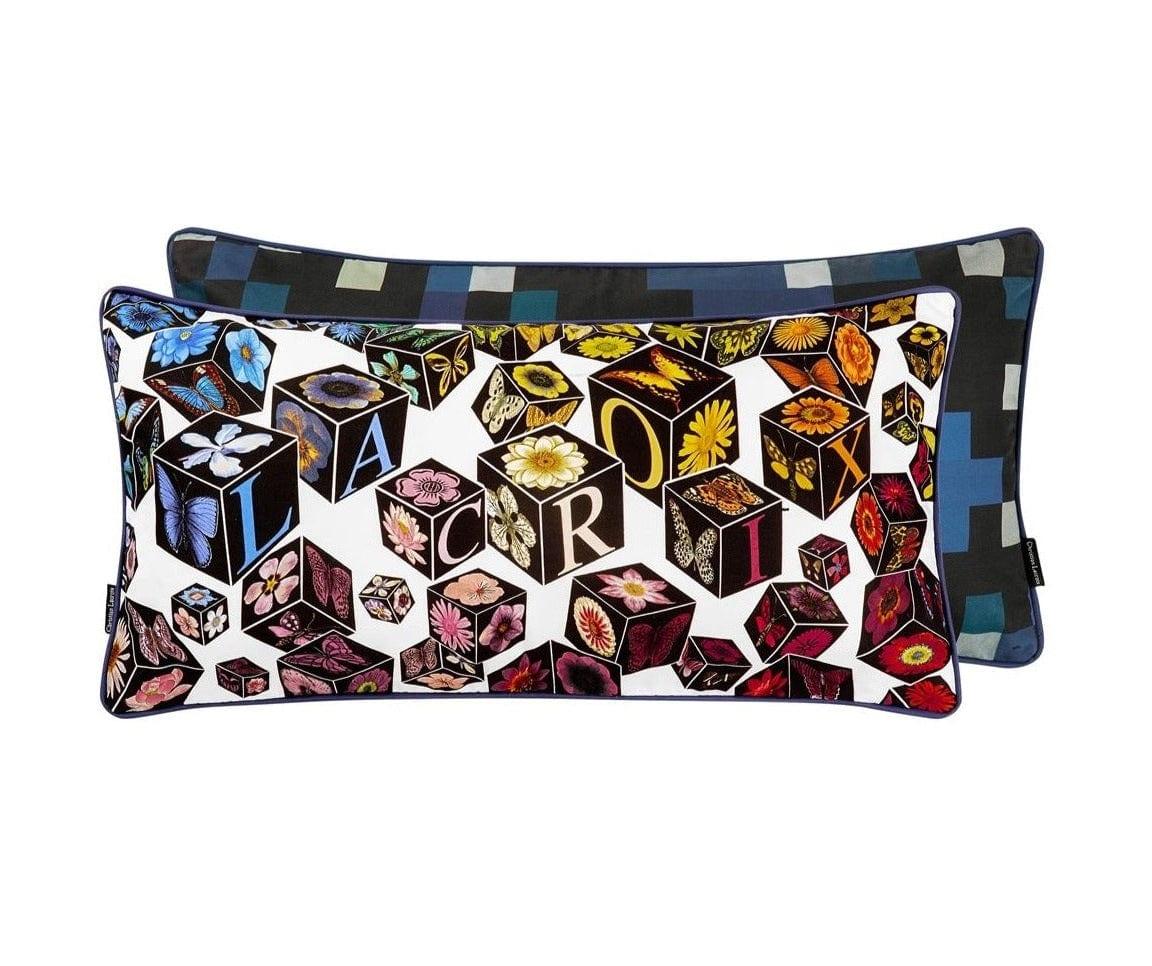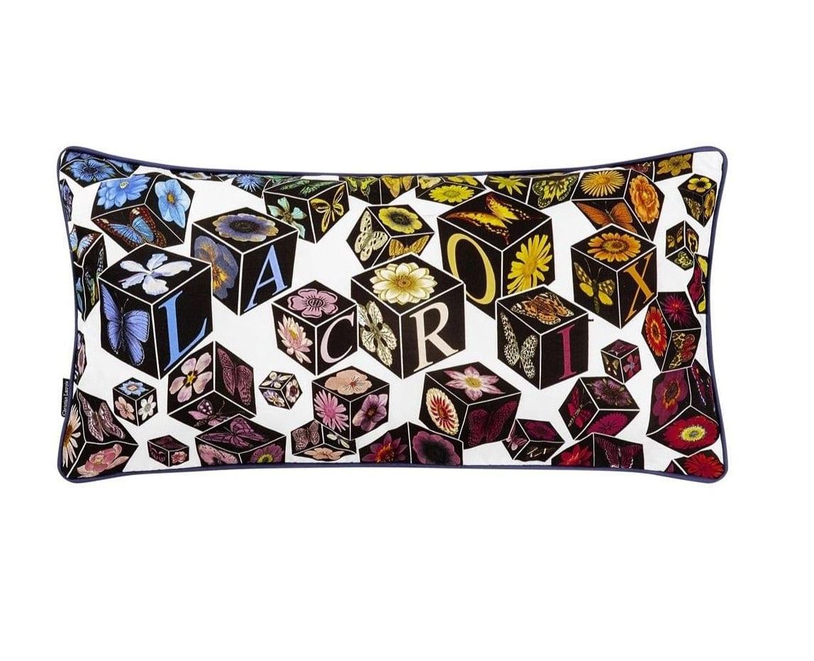Die Designer Kissen der Marke Christian Lacroix sind die ideale Ergänzung für ein luxuriöses Interieur. Die dekorativen Würfel, in denen auch das Logo des berühmten Modehauses eingearbeitet ist, schaffen eine farbenfrohe Komposition. Das Kissen besteht aus Baumwollsatin und ist mit einem eleganten Besatz versehen.
