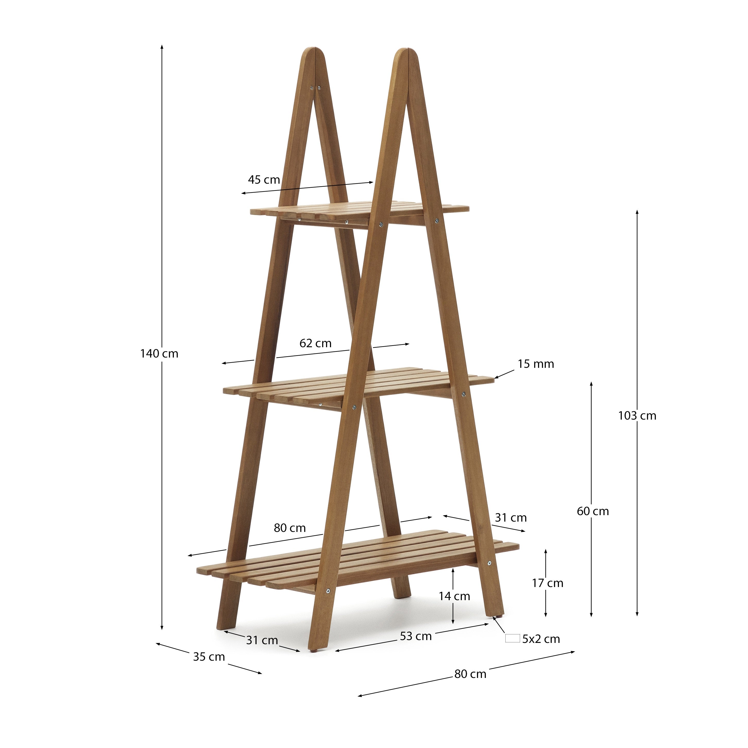 Funktionalität Holzregal Victor garantiert einen bequemen Nutzung des Außenraums und gewährleistet gleichzeitig Zuverlässigkeit und Haltbarkeit. Idealerweise als Ort für die Aufbewahrung von Pflanzen, Büchern oder dekorativen Accessoires geeignet, wodurch Eleganz und Charakter zu jedem Garten, Terrassen oder Balkon verleiht werden.
