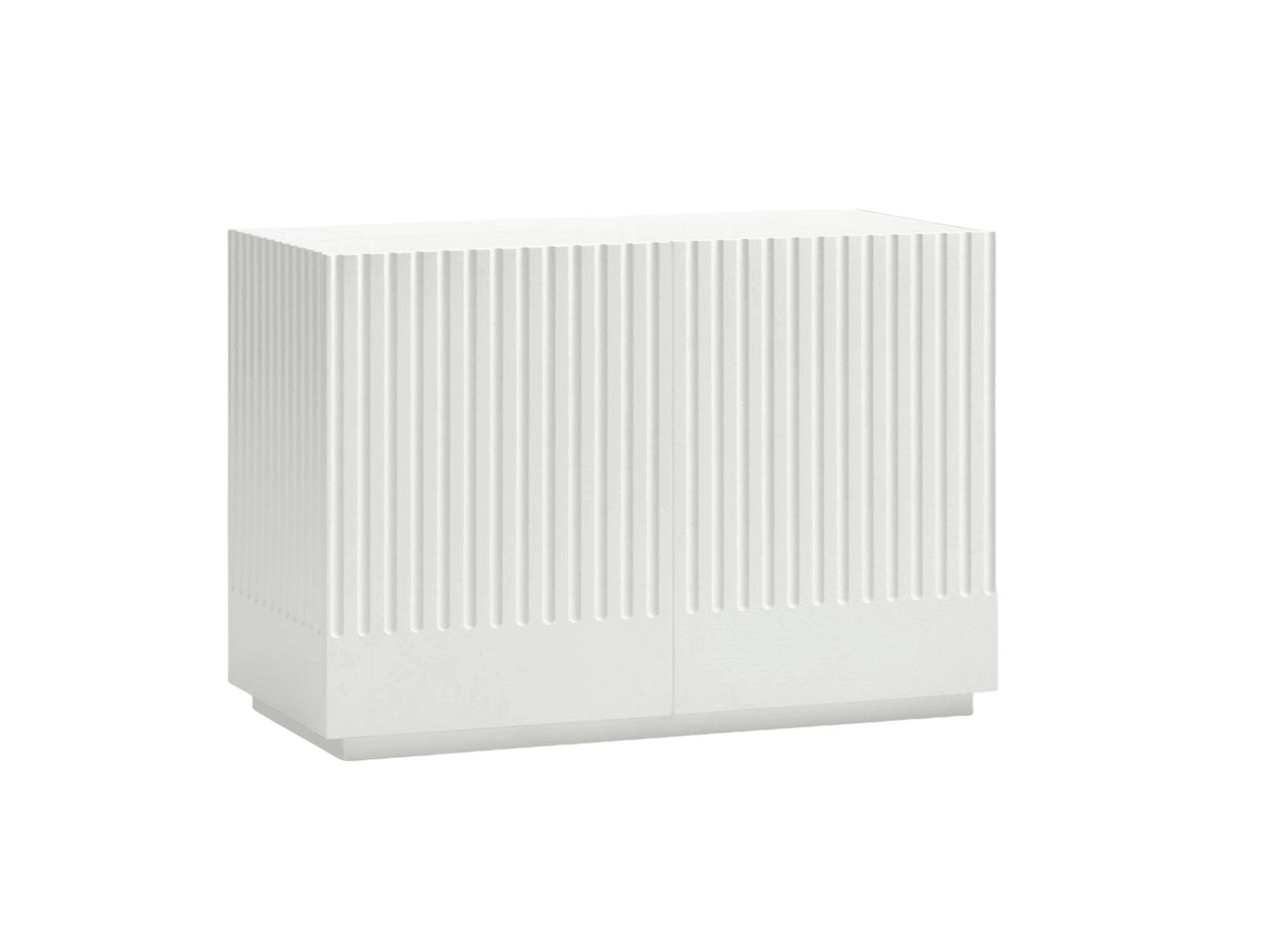 Kabinett Doric in einer eleganten weißen Farbe ist Teil der Doric Collection, die von klassischen griechischen Architekturordnungen inspiriert wurde. Ihr Design bezieht sich auf die Harmonie und Einfachheit dieser Zeit und drückt Solidität und Raffinesse aus.