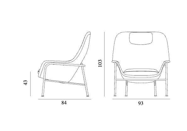Drape High W. Kopfstütze Drape -Sessel mit einer grauen Metallbasis