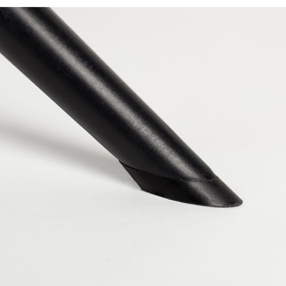 Die Metallbasis in schwarz gemalt mit der Pulvermethode. Sitz mit PU -Schaum gefüllt, in Polyesterstoff gepolstert.