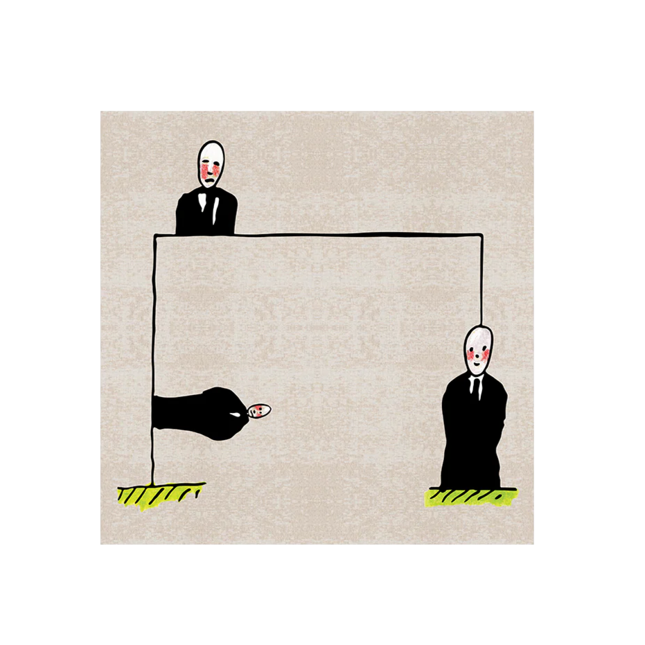 Das Motiv menschlicher Gesichter, das in allen Projekten der Kollektion präsent ist, stellt eine symbolische Brücke dar, die unsere gemeinsame Identität mit der Einzigartigkeit des Individuums verbindet. Teppich 3 Men im Format 200 x 200 cm ist nicht nur eine Bodendekoration, sondern auch ein künstlerisches Manifest, das dem Raum Tiefe und einen einzigartigen Charakter verleiht. Er eignet sich hervorragend für das Wohnzimmer, das Büro oder öffentliche Räume und wird zum Ausgangspunkt für inspirierende Gespräche.