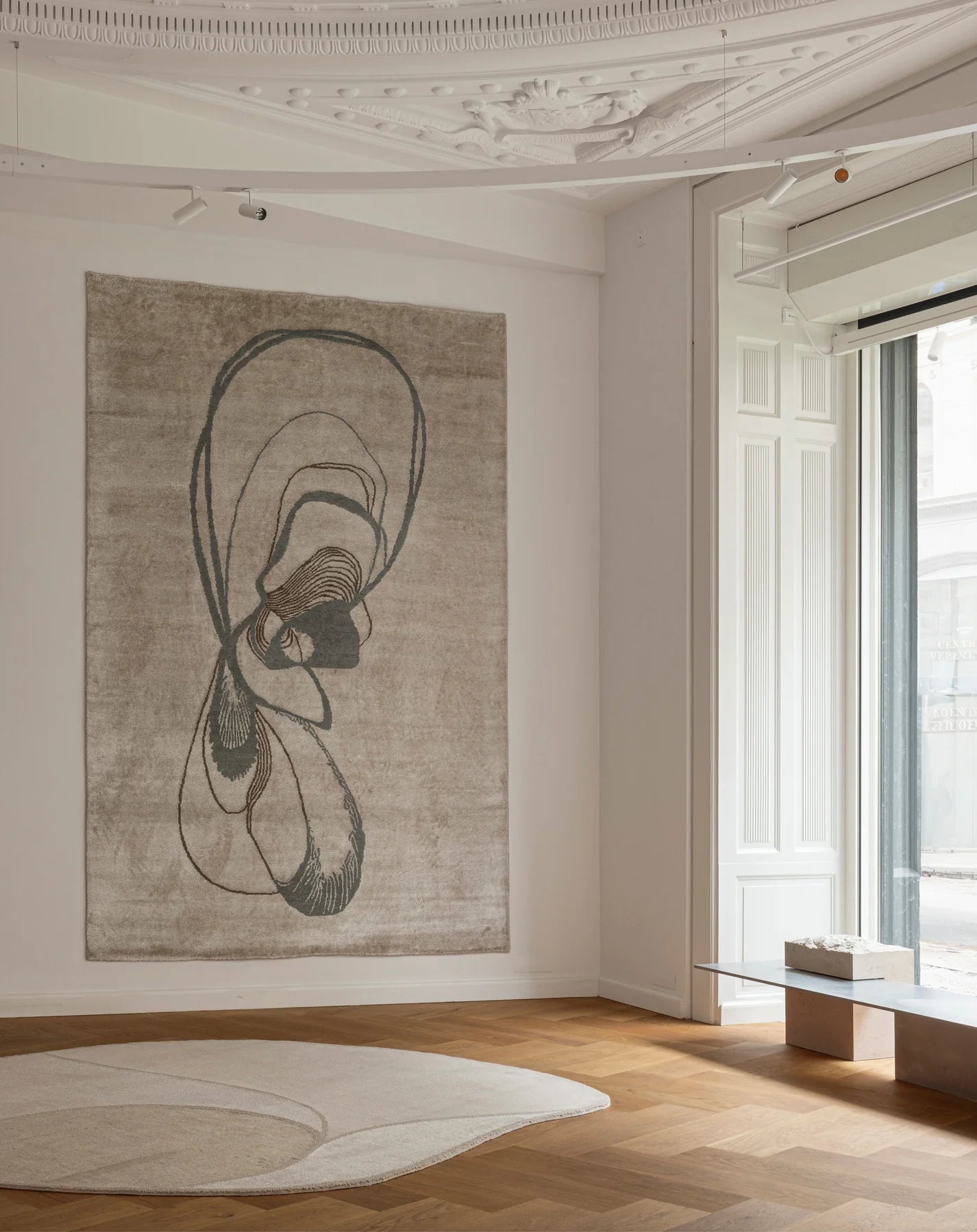 Teppich Dream Adrift ist eine Verbindung von handwerklichem Können und künstlerischer Sensibilität. Die Kombination aus der matten Struktur von handgekämmter Wolle und dem seidigen Glanz von Bambusviskose schafft einen einzigartigen visuellen und taktilen Effekt. Zarte, geschwungene Linien, inspiriert von der Form einer Muschel, beleben die Oberfläche und verleihen dem Teppich ein Gefühl von Bewegung, Tiefe und Eleganz. Dies ist die perfekte Wahl für Räume, die individuellen Charakter und luxuriöse Ausführung schätzen.