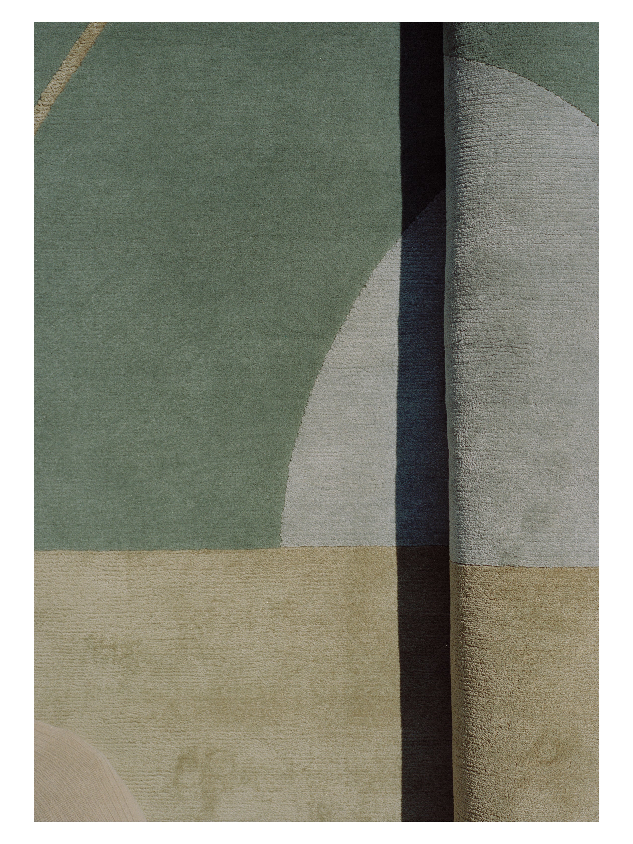 Hergestellt aus einer luxuriösen Mischung aus neuseeländischer Wolle und Seide, begeistert der Designer-Teppich für das Wohnzimmer Rising Gemini nicht nur mit seinem subtilen Glanz, sondern bietet auch natürliche Wärme, Langlebigkeit und unvergleichlichen Komfort unter den Füßen. Diese Kombination aus Kunst, Eleganz und Funktionalität vervollständigt jeden Raum.