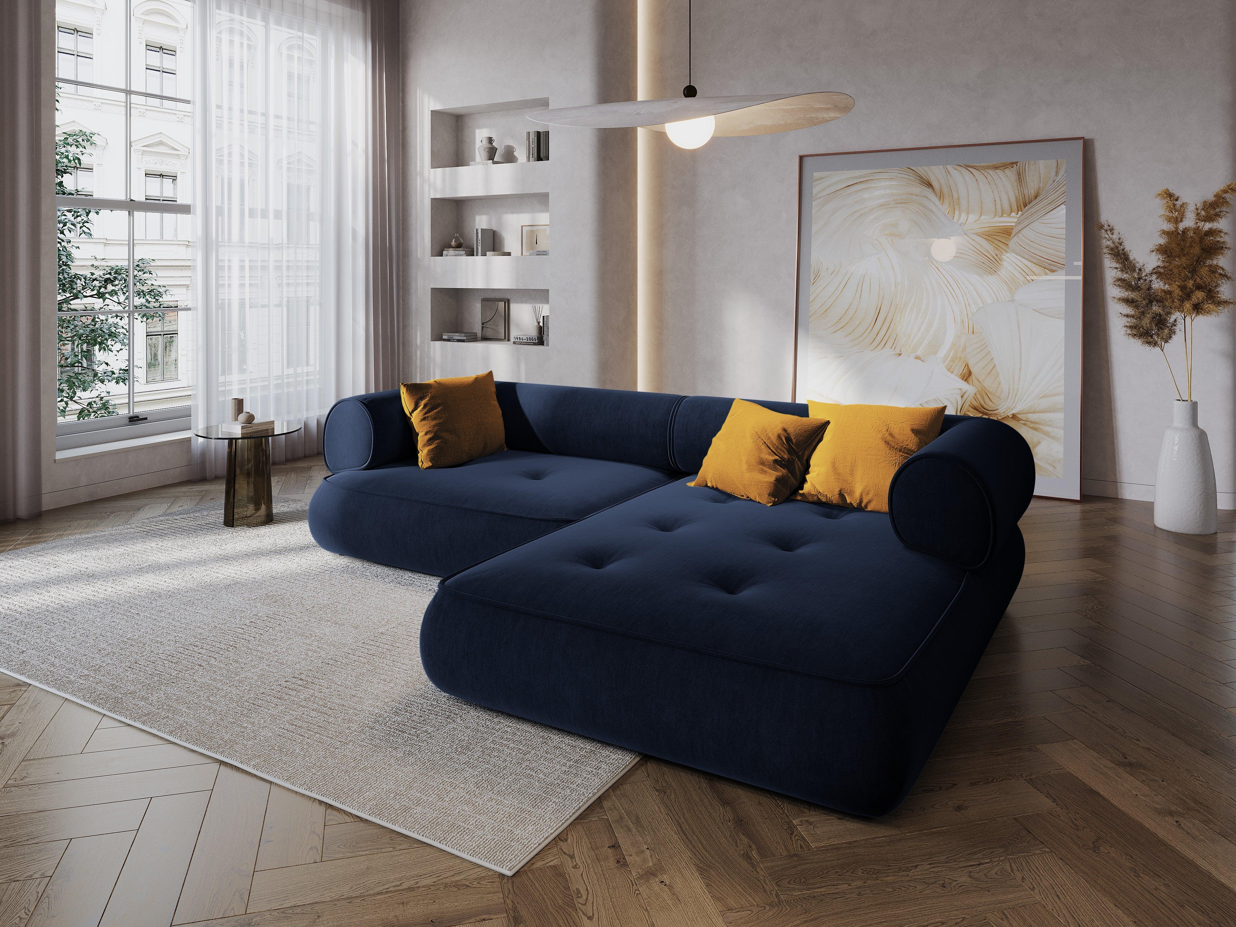 Stylische Eckcouch Lily verleiht jedem Raum einen Hauch von zeitloser Eleganz. Ihre außergewöhnliche Form ist das Ergebnis eines modernen Ansatzes für zeitlose Möbelgestaltungen. Die abgerundeten Kanten der Sitzflächen haben eine äußerst originelle Form, und die Rückenlehnen bieten den nötigen Komfort beim Entspannen. Der Bezug aus Chenil-Stoff ist nicht nur praktisch, sondern auch angenehm im Griff.