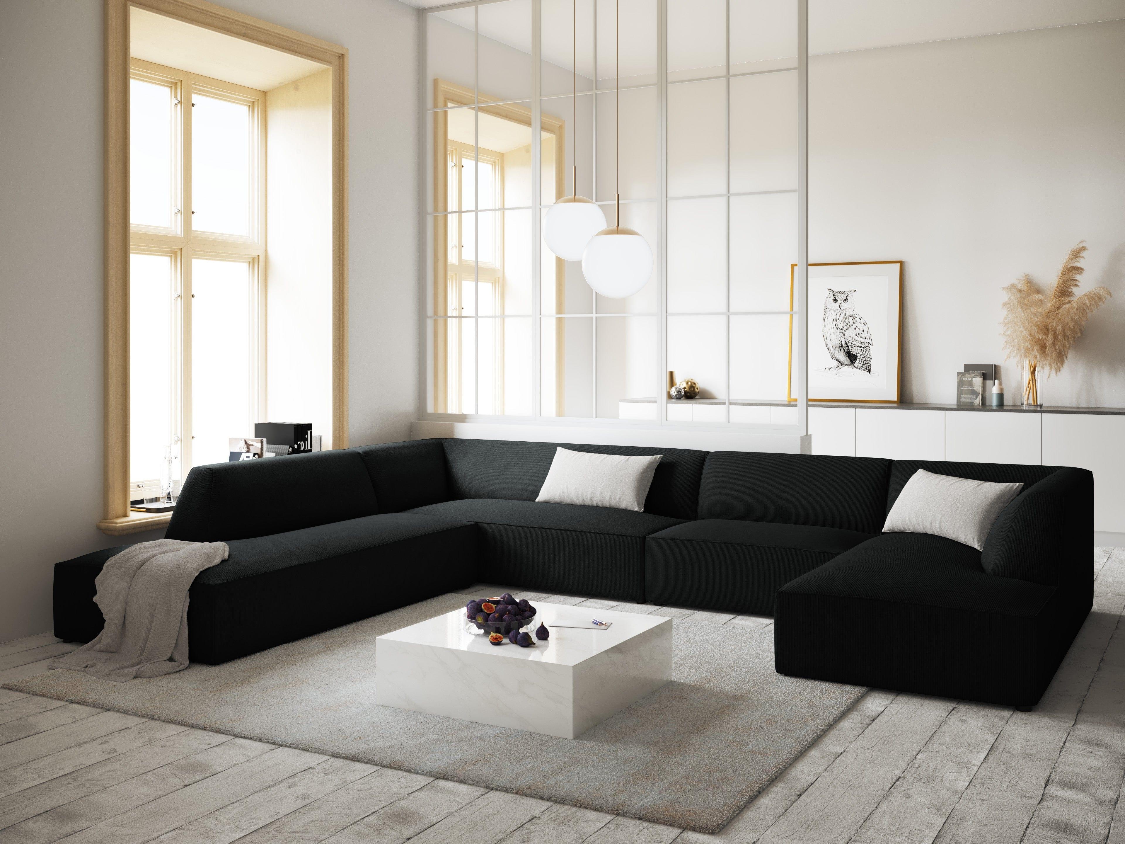 Ruby ist eine panoramische Designer-Sofa für sieben Personen, die sich durch ihre schlichte und originelle Form auszeichnet. Die breite und bequeme Sitzfläche ist mit einer niedrigen Rückenlehne und Armlehnen kombiniert. Das Gesamtbild bietet außergewöhnlichen Komfort.