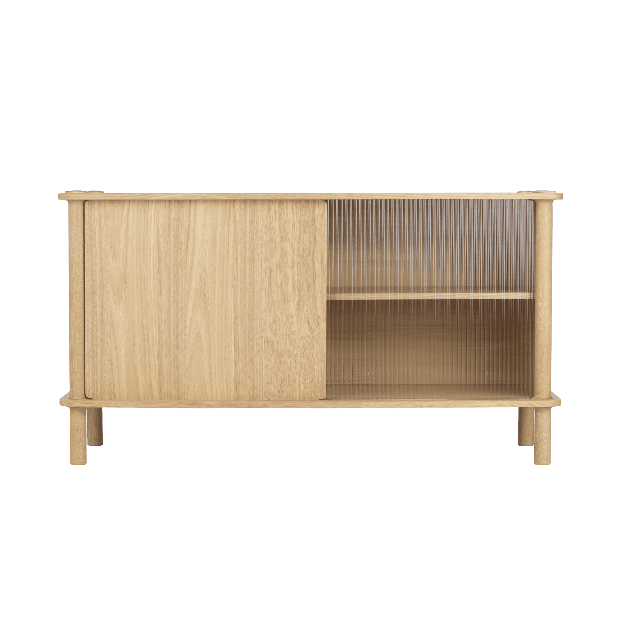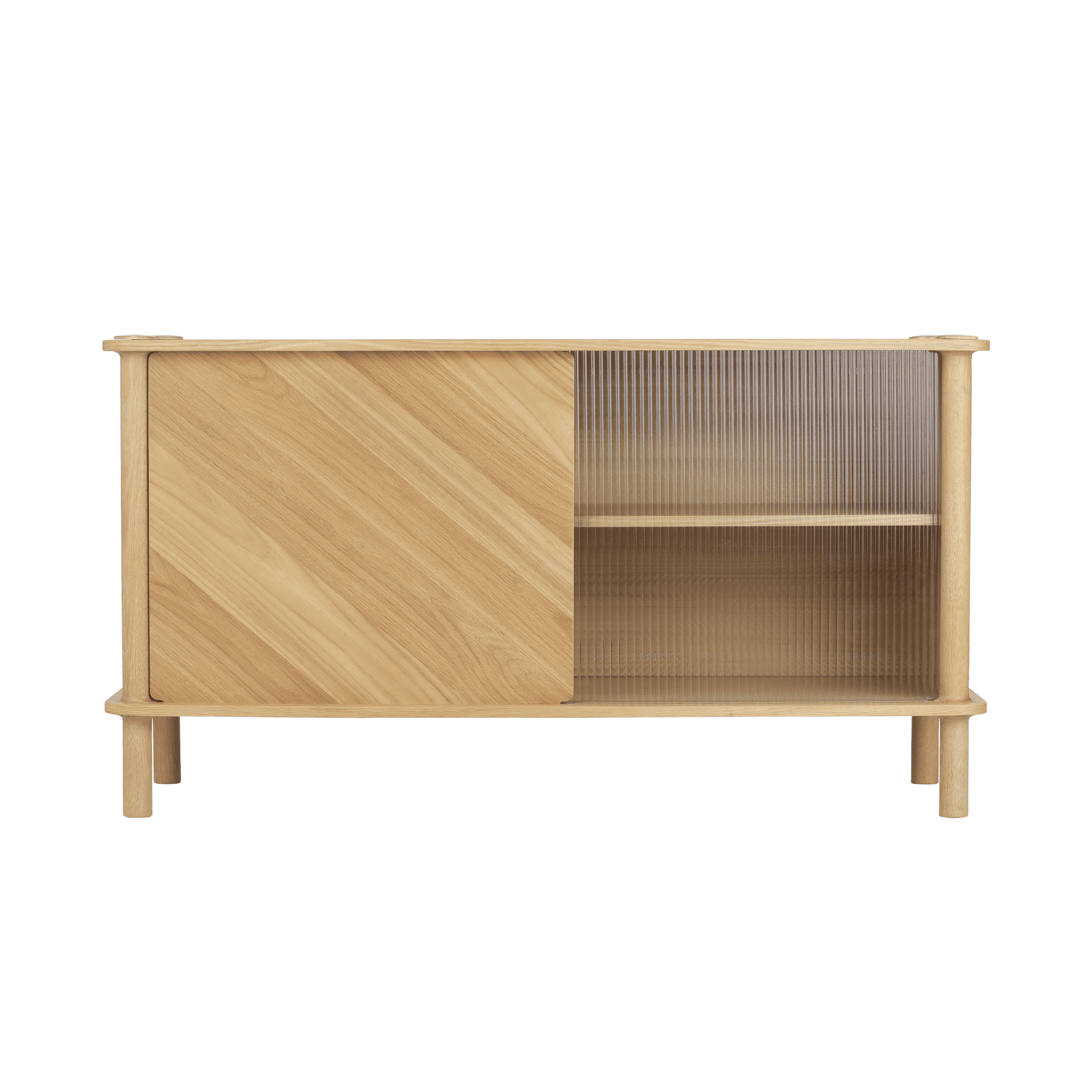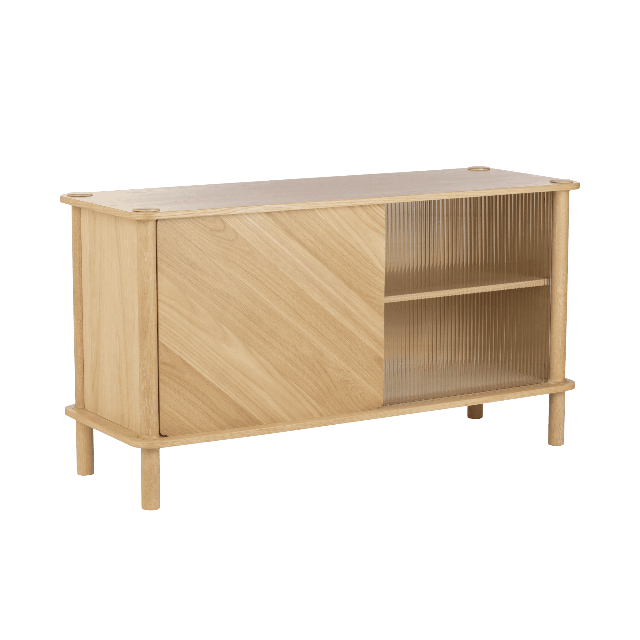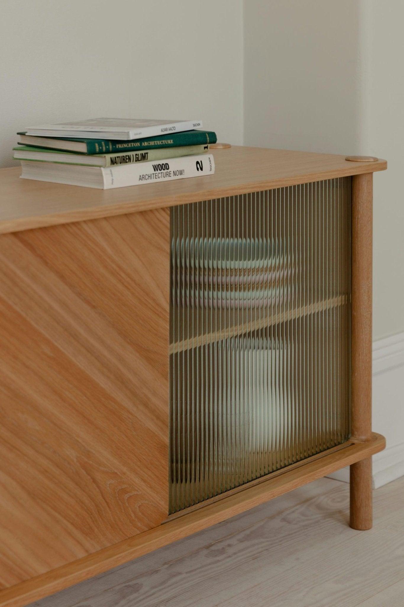 Solid Eiche, Eichenfurnier, geschmittertes Glas, MDF