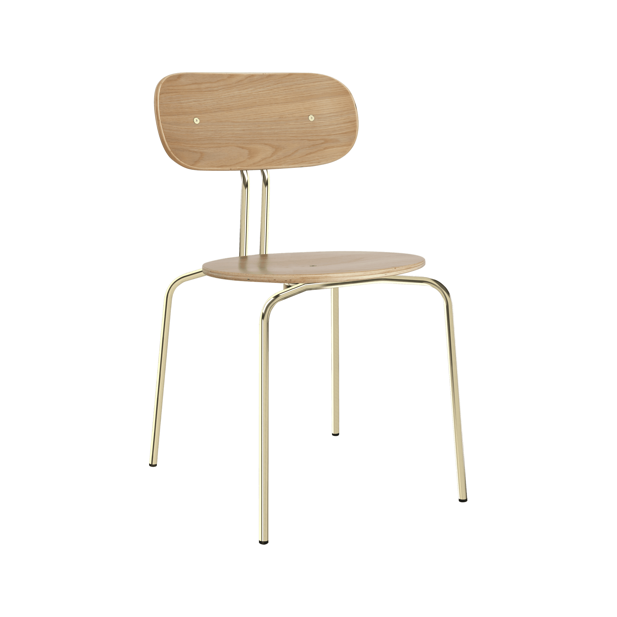 Stuhl Neugierig ist elegant, leichte und minimalistische Möbel aus Eichenfurnier. Es ist mit Messing- oder schwarzen Beinen erhältlich, und das optionale Sitzkissen bietet zusätzlichen Komfort. Sie können ein Kissen aus 17 Farben des Horizons -Stoffes auswählen, die 100% recycelt sind, sowie in einem braunen oder weißen Schatten mit Teddybärenstoff.