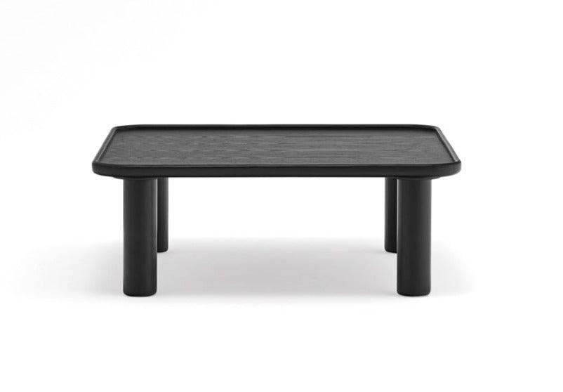 Kaffeetische Nest bestand aus den höchsten Klassenmaterialien: Ihre Beine bestehen aus massivem Gummiholz, während ein obereres Top aus furnierten Aschenfasern besteht. Die schwarze Farbe fällt perfekt mit dem minimalistischen Stil zusammen, in dem das gesamte Projekt aufrechterhalten wird.
