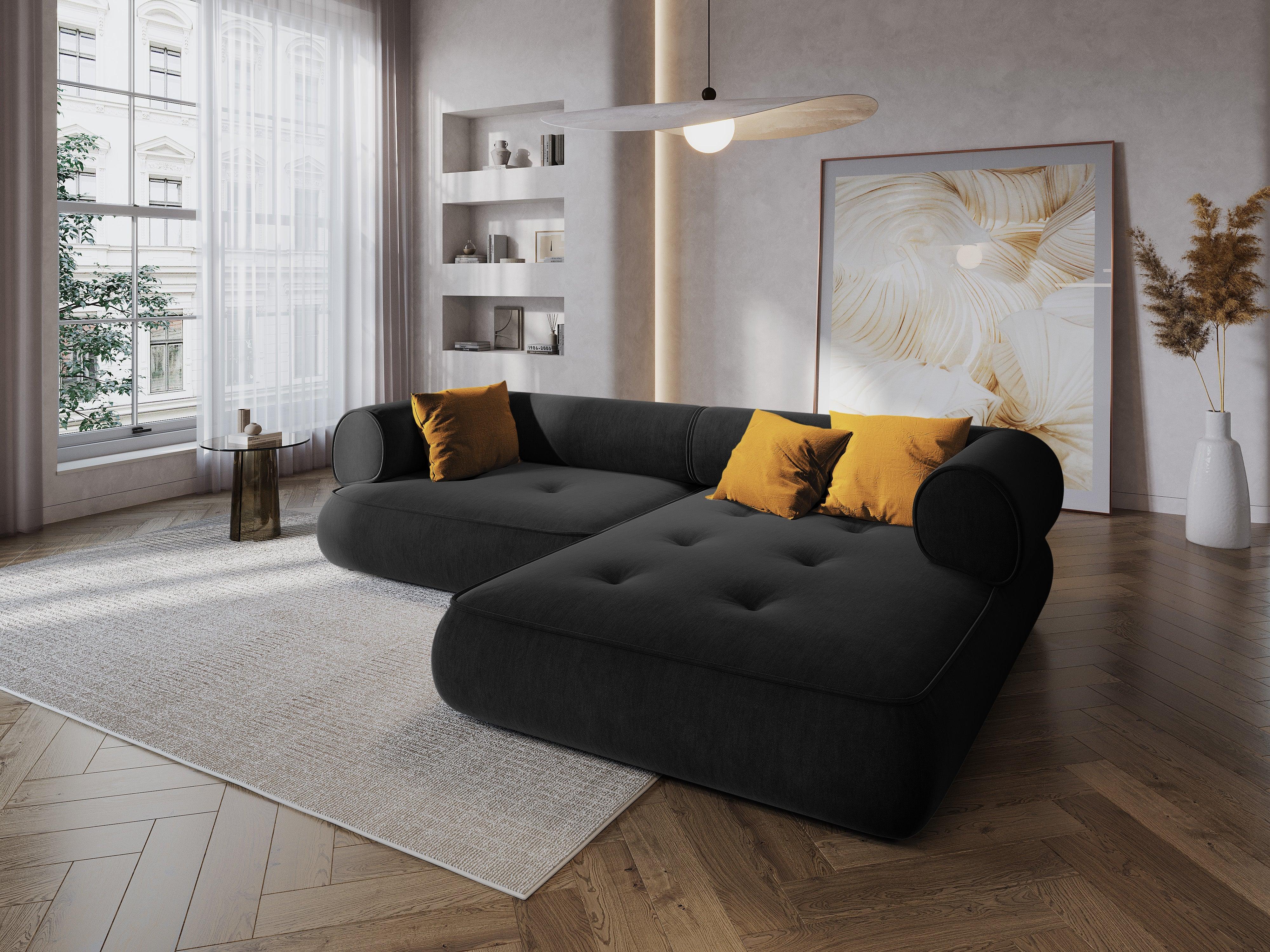 Stylische Eckcouch Lily verleiht jedem Raum einen Hauch von zeitloser Eleganz. Ihre außergewöhnliche Form ist das Ergebnis eines modernen Ansatzes für zeitlose Möbelgestaltungen. Die abgerundeten Kanten der Sitzflächen haben eine äußerst originelle Form, und die Rückenlehnen bieten den nötigen Komfort beim Entspannen. Der Bezug aus Chenil-Stoff ist nicht nur praktisch, sondern auch angenehm im Griff.